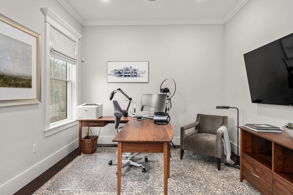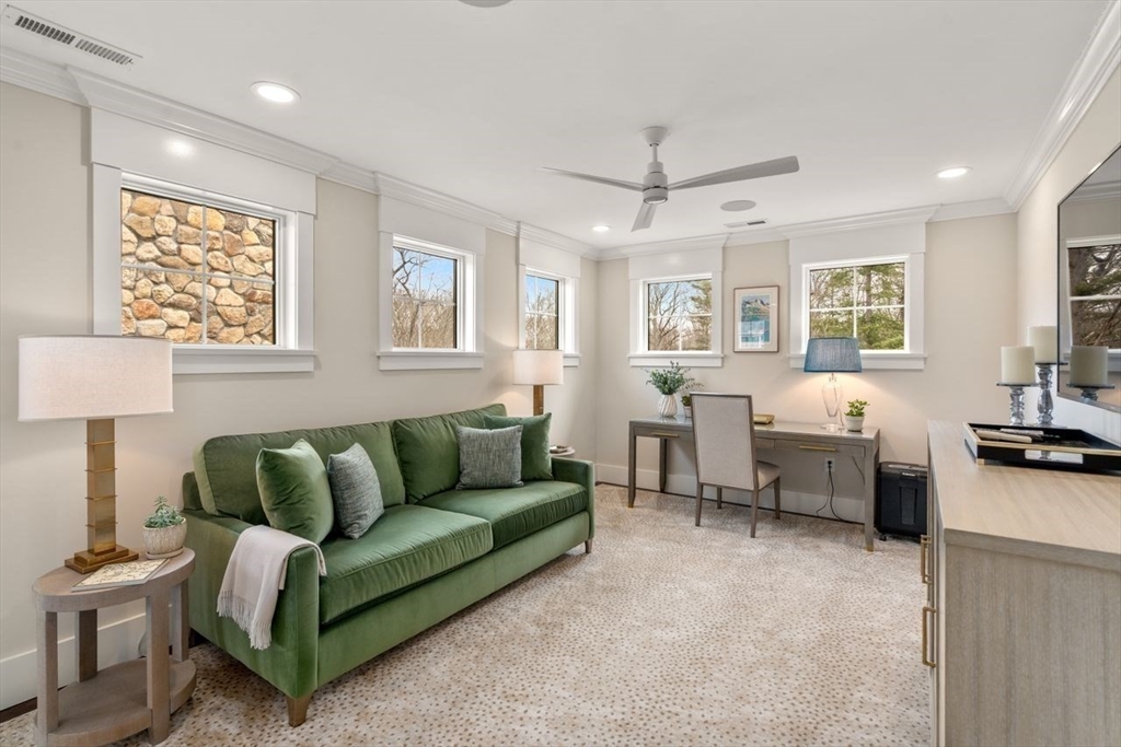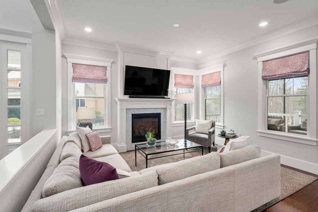Picture Perfect! The crown jewel of Winning Farm, a 55+ community ideally situated in the heart of Winchester. Step inside to find a bright, open-concept living space. Soaring ceilings, gleaming hardwood floors and refined architectural details create an airy, elevated atmosphere. Beautiful private office. Gourmet kitchen with premium appliances, stone countertops and oversized island for casual dining and entertaining. Dining area with coffered ceilings, fireplaced living room, and bonus screened porch to enjoy the view of the lush conservation land and walking trails. The luxurious primary retreat offering a spa-like bath with double vanities .Laundry room and 1/2 bath round out the main level. Upper level boasts 2 additional bedrooms, a full bath and flexible, cozy loft space. Amazing, walk out lower level includes a full gym, patio for grilling, built in cabinets, full bath and spectacular, custom built wine cellar Two car garage. This opportunity is not to be missed!