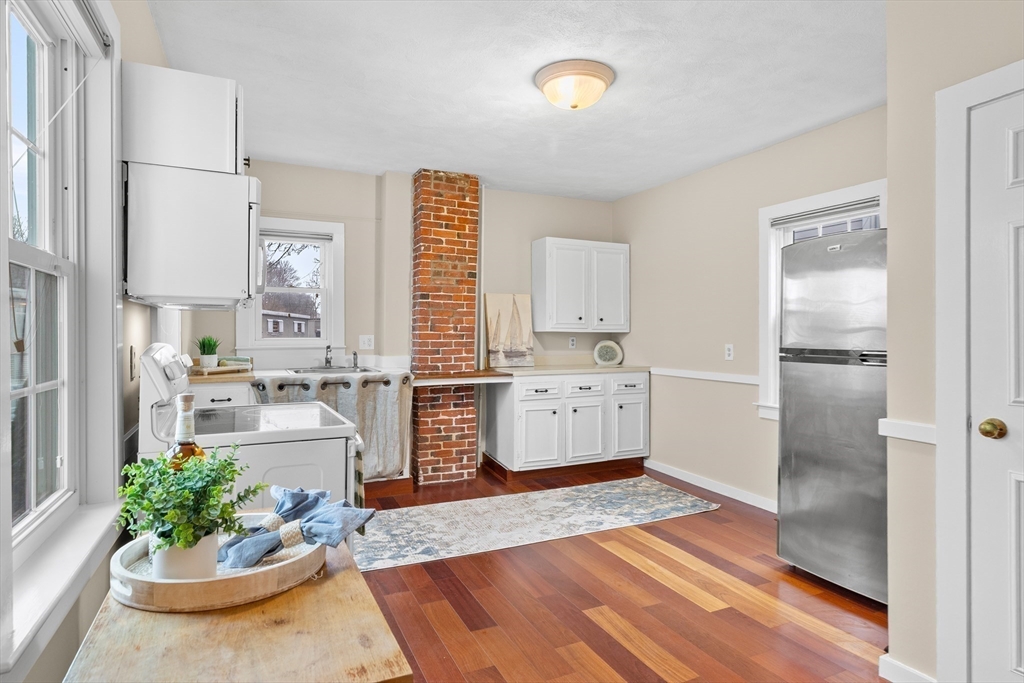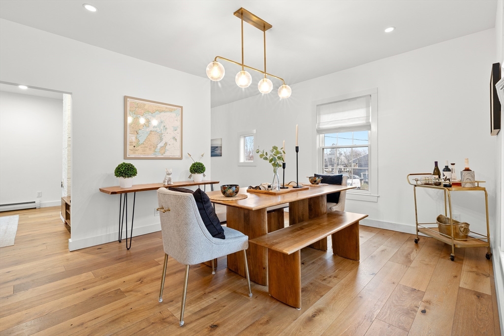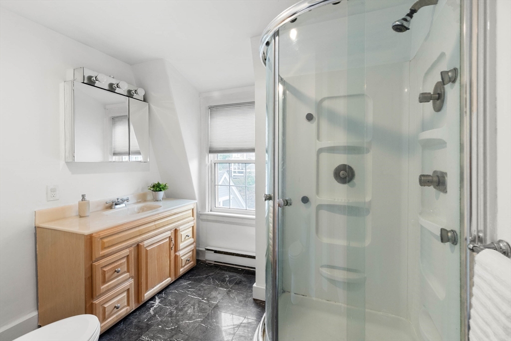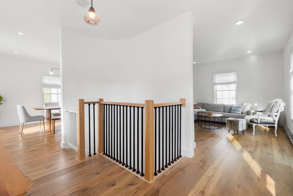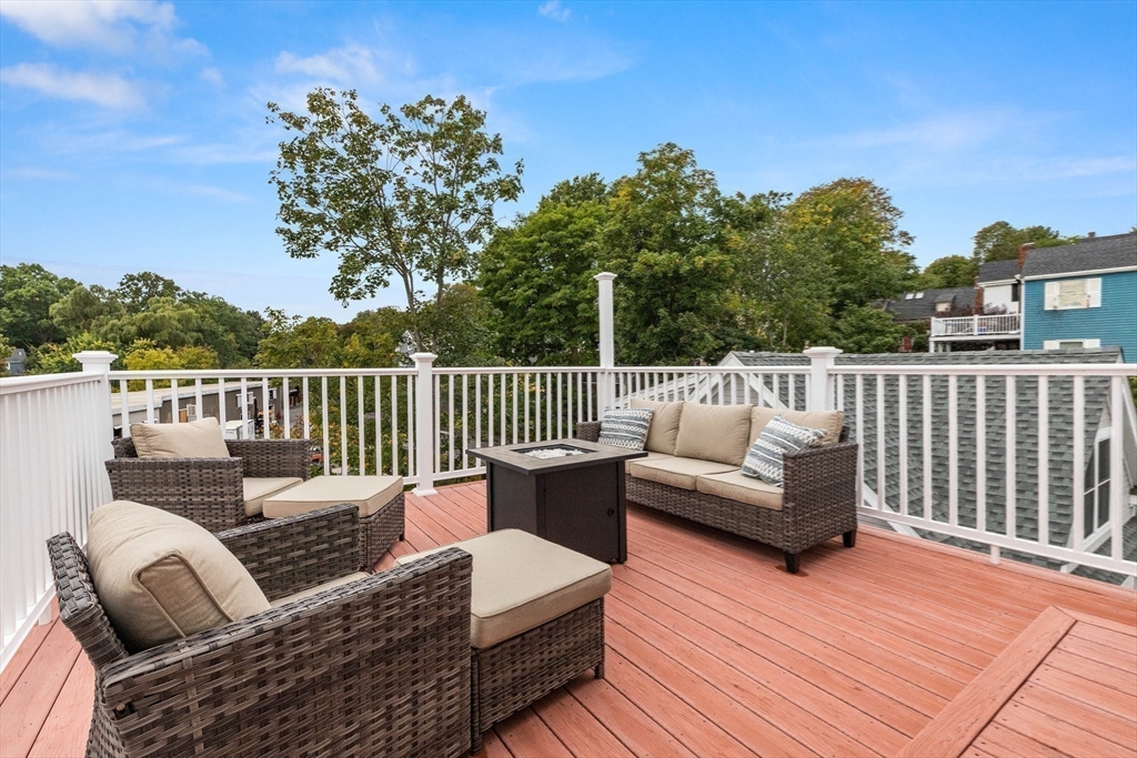 Downtown Marblehead. Minutes to shopping, fine dining & walking trails. Step onto a wrap around porch w/views of the seaside town steps away. First, enter into a newly painted 1st flr unit that features a large eat in kitchen, livng rm, en-suite bedrm, hardwd flrs thru out & deck. The main house features a walk up curved staircase enhanced w/elegant custom railings. The open wrap around flr plan showcases an inviting dining rm & livng rm w/nw hrdwd flrs, wafer tech LED lightng & fixtures & nw windows. A stunning chefs kitchen w/quartzite cntrs, subway tile bcksplsh, ss applncs, chic ovrhead lighting & nw cabinetry. There is also a full bth on this flr. Upstairs you have a generous sized primary bedrm w/pocket dr, modern lghtng, hrdwd flrs & access to an expansive rooftop deck. Another bedrm & bathrm complete the top flr. The ground level features a private office/bedrm along w/separate laundry area & plenty of room for storage. Custom paved 6 car drivewy & tree lined yard w/patio.
