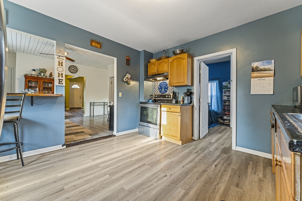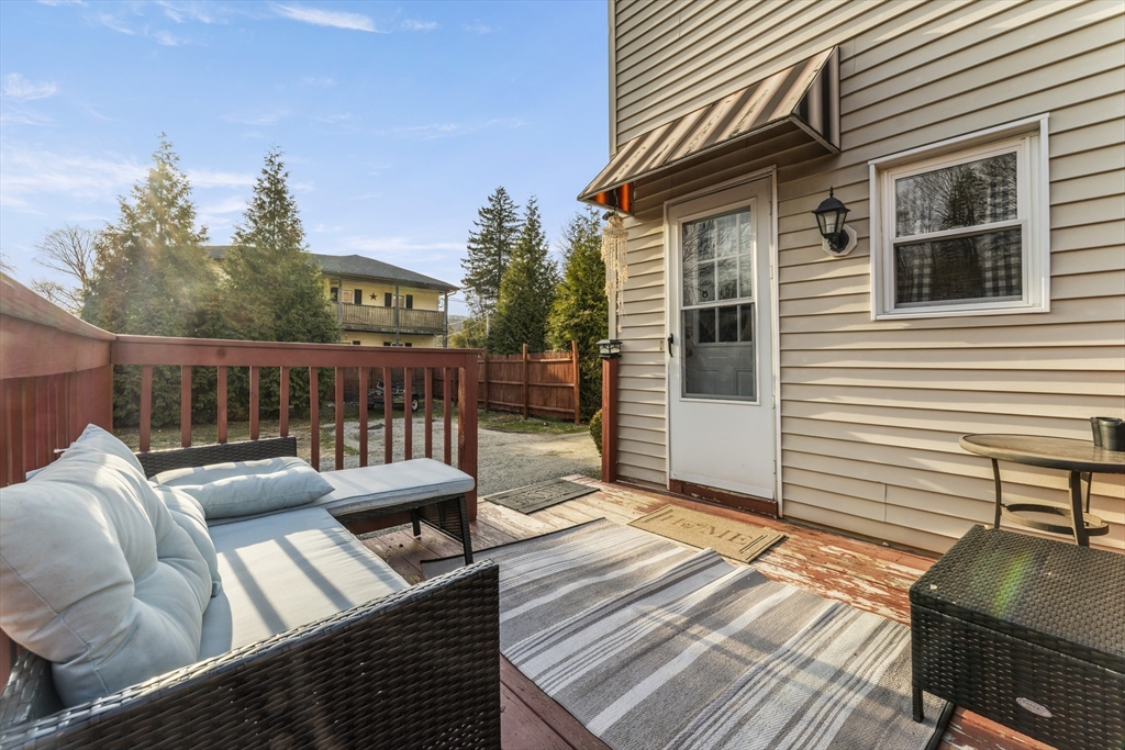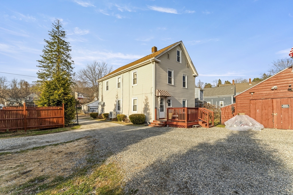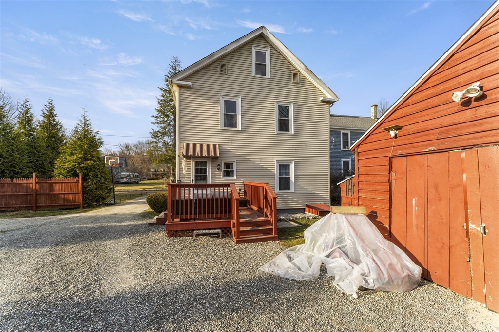 Welcome to this lovely, updated village colonial in West Warren. The first floor provides plenty of living space including a large kitchen with an eat in area, spacious living room with a pellet stove, a bedroom and full bath. The second floor provides 4 bedrooms including a primary bedroom with an en-suite bathroom. The walk up attic has plenty of storage and expansion potential. The large flat back yard gives you lots of room for entertainment and more storage with multiple sheds. Numerous updates include mini splits, new back deck, new roof - 3 years old with 50 year warranty to transfer to new owners, new stove, new hot water heater (1 year old), new gutters, new laminate flooring, new carpet second floor bedrooms, new shower/bath enclosure first floor bathroom, half of finished attic, and new primary bedroom en-suite bathroom. Schedule a time to tour today!
