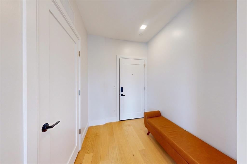Residence 402 is a thoughtfully designed 1 bed, 1 bath home offering approx. 720 sq ft with a desirable open concept layout and oversized windows that fill the living space with natural light. The kitchen features quartz countertops, two tone shaker cabinetry, and stainless steel appliances, while the bath is finished with Porcelanosa tile, matte black fixtures, and a frameless glass shower. Additional highlights include prefinished hardwood floors, recessed lighting, and in unit laundry. Building amenities include a fitness center with app based equipment, pet run, garage parking, and ground level retail/co working space. Ideally located in Jeffries Point, less than 1/2 mile to Maverick Station, bus lines, and ferries to Seaport and Charlestown, with easy access to waterfront parks, restaurants, and Logan Airport.