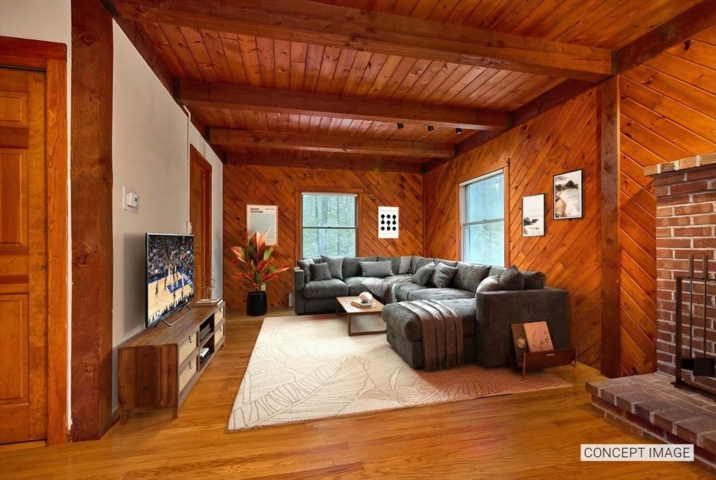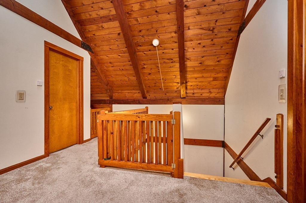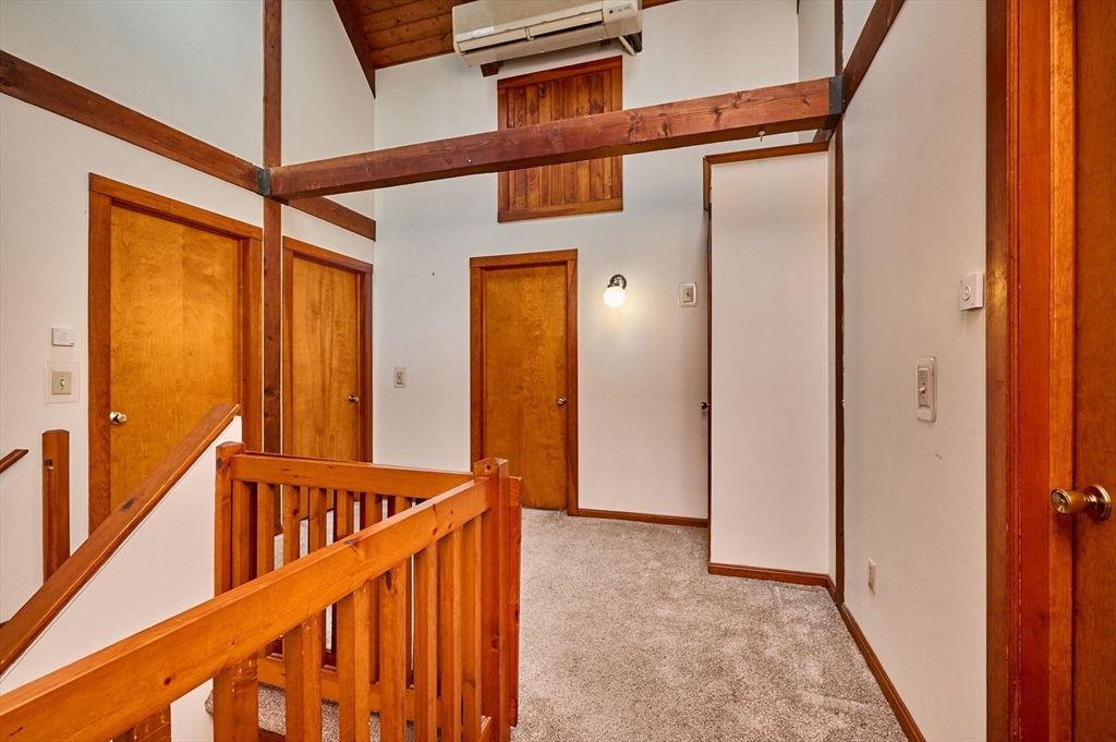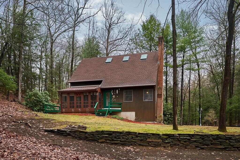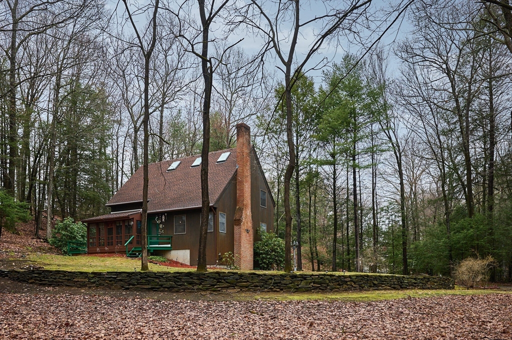Be the 3rd owner of this quality-built post-and-beam Contemporary, tucked away on 1.25 ac. at the end of a quiet cul-de-sac in Greenfield’s coveted Highland Park area. Designed for privacy & connection to nature, with stone walls, woodland views, & underground utilities that preserve curb appeal & beauty. A warm, inviting interior features exposed beams, vaulted ceilings, skylights, & a wide central staircase. The main level offers a spacious living room w/ brick hearth/fireplace, kitchen, dining area, office, 1/2 bath, & laundry. Upstairs are 3 BR's & full bath. The finished heated entry level between a 2-bay garage offers versatile bonus space. Relax on the newer screened porch overlooking your backyard sanctuary. Well maintained w/ improvements. (see uploaded list) Located directly across from Highland Park w/ trails, pond, & tennis courts—yet mins. to town amenities & nearby schools. The best of both worlds: secluded, peaceful living w/ everyday convenience. More images to follow