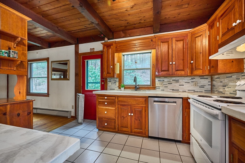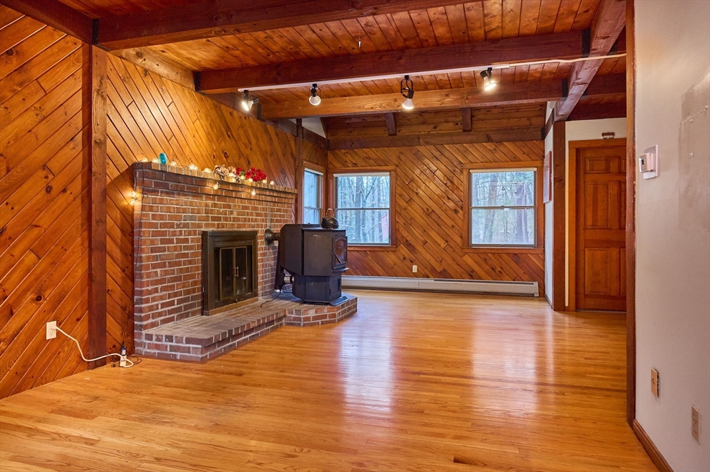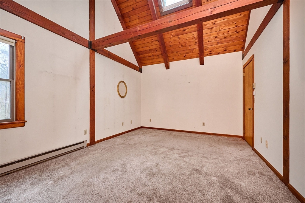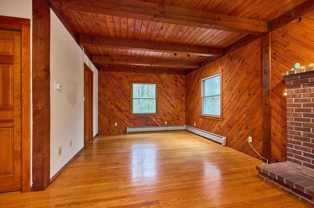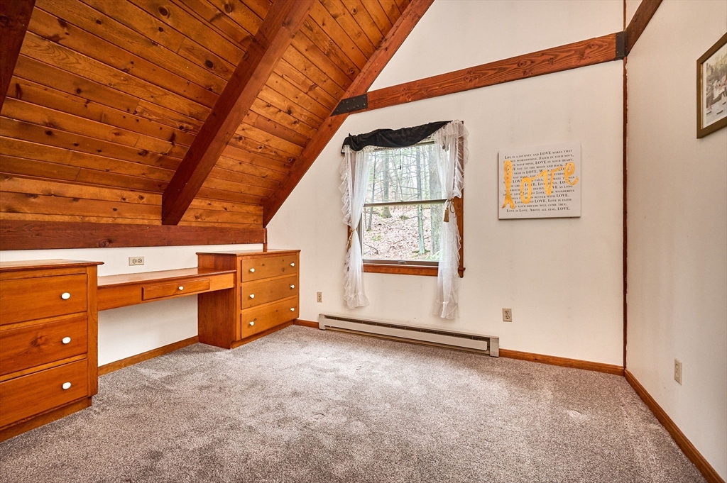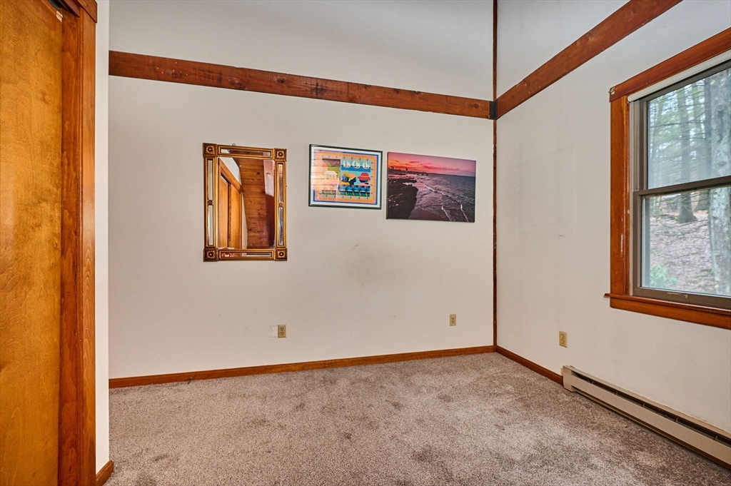 Be the 3rd owner of this quality-built post-and-beam Contemporary, tucked away on 1.25 ac. at the end of a quiet cul-de-sac in Greenfield’s coveted Highland Park area. Designed for privacy & connection to nature, with stone walls, woodland views, & underground utilities that preserve curb appeal & beauty. A warm, inviting interior features exposed beams, vaulted ceilings, skylights, & a wide central staircase. The main level offers a spacious living room w/ brick hearth/fireplace, kitchen, dining area, office, 1/2 bath, & laundry. Upstairs are 3 BR's & full bath. The finished heated entry level between a 2-bay garage offers versatile bonus space. Relax on the newer screened porch overlooking your backyard sanctuary. Well maintained w/ improvements. (see uploaded list) Located directly across from Highland Park w/ trails, pond, & tennis courts—yet mins. to town amenities & nearby schools. The best of both worlds: secluded, peaceful living w/ everyday convenience. More images to follow