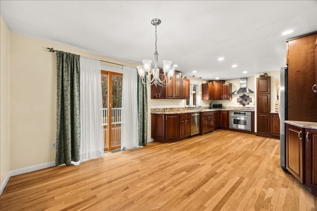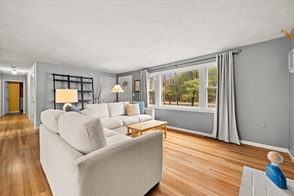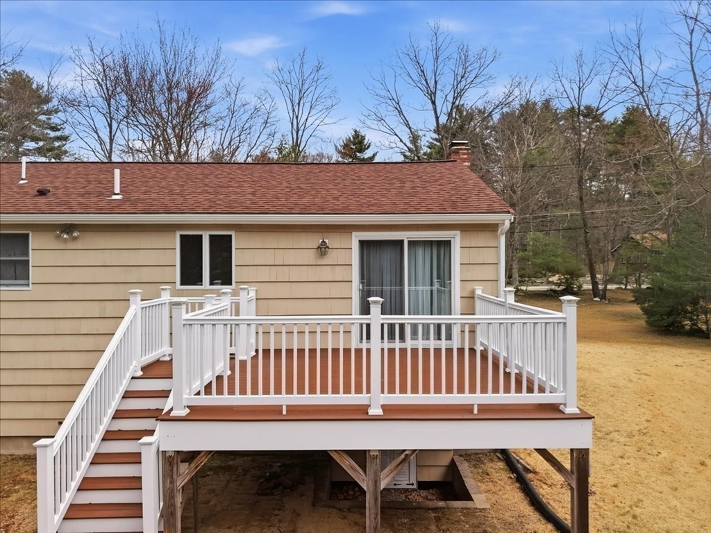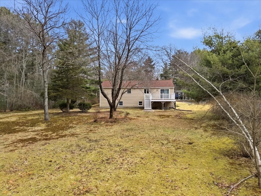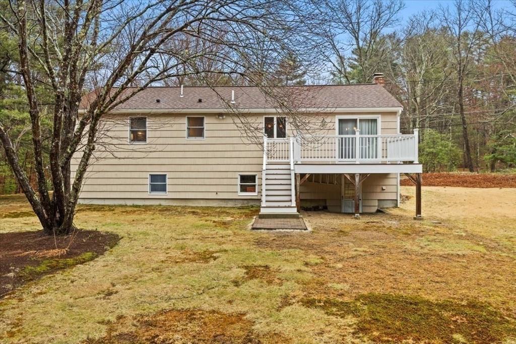 Look no further! Set on a spacious and private lot, finds you this charming ranch-style home. Features include hardwood floors, a beautifully upgraded kitchen offering SS appliances, granite counters, solid cherry cabinets with two corner rotating shelf systems, refrigerator surrounded by its own wall of cabinets, along with an additional wall of unique cabinetry. A functional layout that includes three bedrooms and two full bathrooms, to include a king-sized primary bedroom offering a private bath and two closets. Additional highlights include central air, ready-to-finish walkout basement - providing excellent potential for added living/recreational space. Enjoy dining or relaxing on the large maintenance free deck during the upcoming spring days/nights overlooking private backyard with adjacent creek. Property has convenient access to Commuter Rail, Boston, Providence, Houses of Worship, Lake Massapoag - making it an appealing choice in a highly sought-after community. Welcome Home!