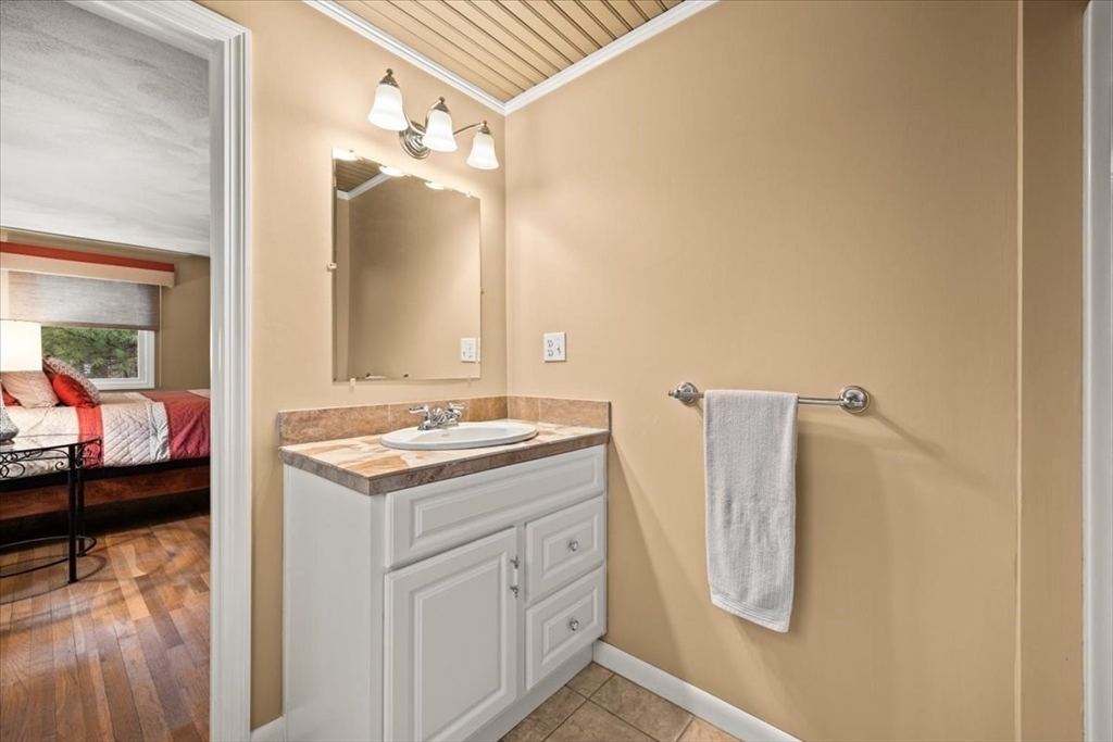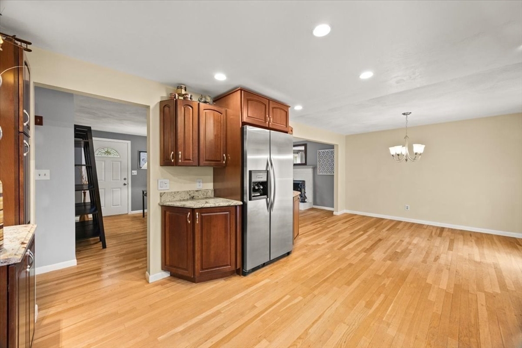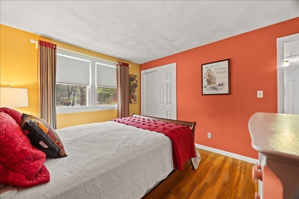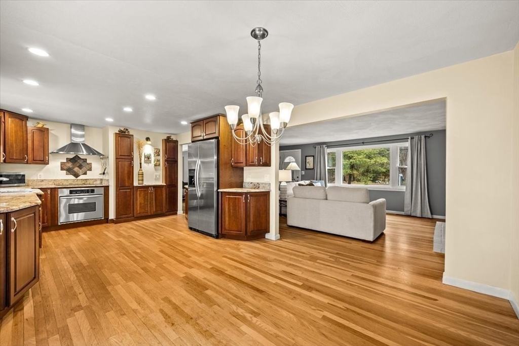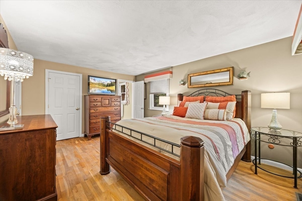 Look no further! Set on a spacious and private lot, finds you this charming ranch-style home. Features include hardwood floors, a beautifully upgraded kitchen offering SS appliances, granite counters, solid cherry cabinets with two corner rotating shelf systems, refrigerator surrounded by its own wall of cabinets, along with an additional wall of unique cabinetry. A functional layout that includes three bedrooms and two full bathrooms, to include a king-sized primary bedroom offering a private bath and two closets. Additional highlights include central air, ready-to-finish walkout basement - providing excellent potential for added living/recreational space. Enjoy dining or relaxing on the large maintenance free deck during the upcoming spring days/nights overlooking private backyard with adjacent creek. Property has convenient access to Commuter Rail, Boston, Providence, Houses of Worship, Lake Massapoag - making it an appealing choice in a highly sought-after community. Welcome Home!