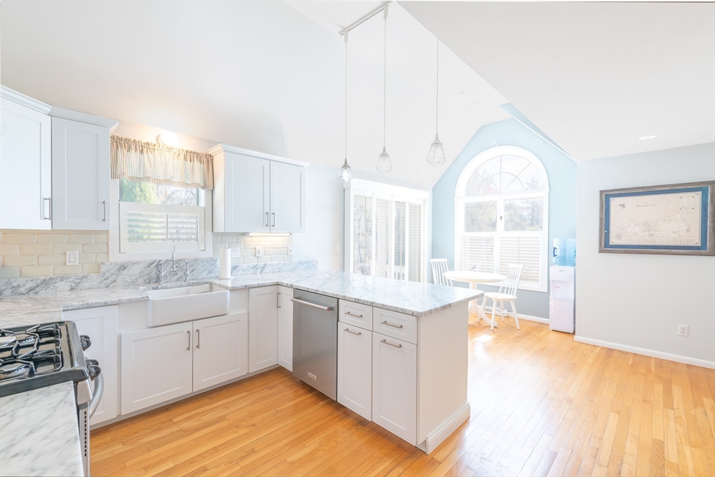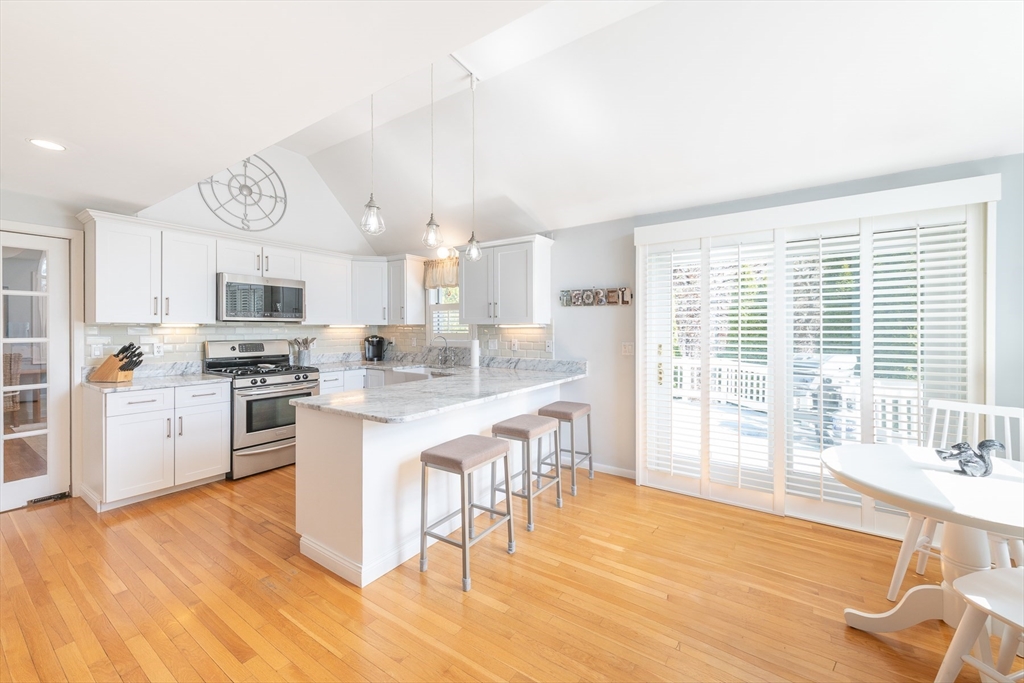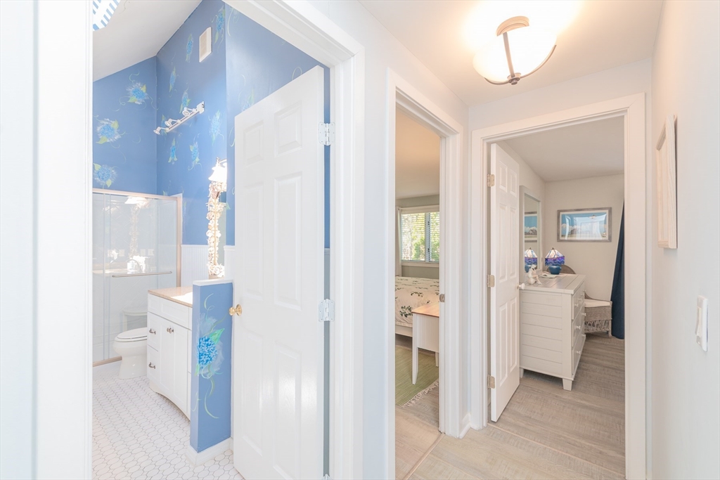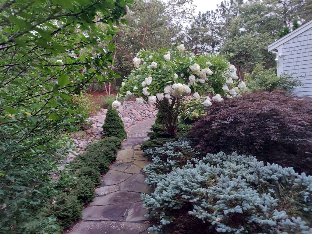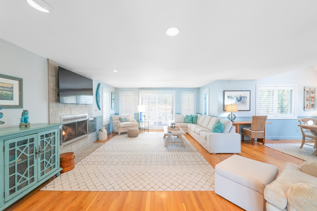 Tucked away on a beautifully landscaped lot in desirable Holland Mills Estates, this thoughtfully designed home blends timeless charm with relaxed, everyday living. Offering 3 bedrooms, 3.5 baths, and a finished lower level, the home invites both comfort and versatility in a setting that feels quietly refined. From the moment you arrive, lush plantings and classic stonework create a welcoming sense of place. Inside, the sun-filled eat-in kitchen is both functional and inviting, featuring stainless steel appliances, hardwood flooring, and easy access to an expansive deck--perfect for morning coffee or summer evenings outdoors. The living and dining spaces are warm and gracious, centered around a fireplace and enhanced by French doors, plantation shutters, and a natural flow to the stone patio--ideal for gathering with friends or enjoying the peaceful surroundings. A welcoming foyer with stone flooring leads to a convenient half bath and the second level.