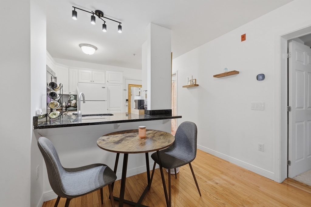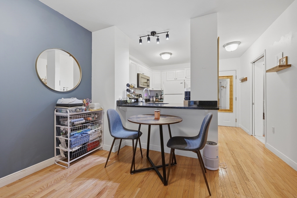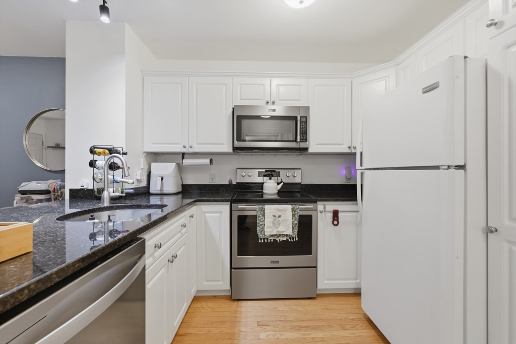 Beautifully updated condo at Belle Isle awaits, just moments from Revere Beach and less than a half mile from the Beachmont T station! This stylish unit offers a bright, open floor plan with HW floors flowing through the kitchen, dining, and living areas—perfect for everyday living. The kitchen features white cabinetry, SS appliances & a convenient breakfast bar. The generously sized bedroom boasts plush wall-to-wall carpet (replaced in 2023), a walk-in closet & blackout shades for ultimate comfort. A full bath w/ tub/shower & in-unit laundry adds everyday convenience. Smart home features elevate this unit, with all lights & shades controlled right from your phone via the Lutron app, plus an Ecobee thermostat for energy efficiency. Recent updates include a new dishwasher & hot water heater (2025). Enjoy one deeded parking space & ample off-street parking for guests. Ideally located across from Belle Isle Marsh Reservation & Fredericks Park, with easy access to Route 1A!
