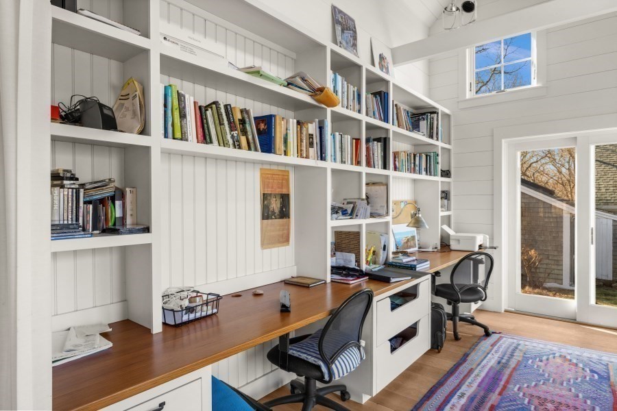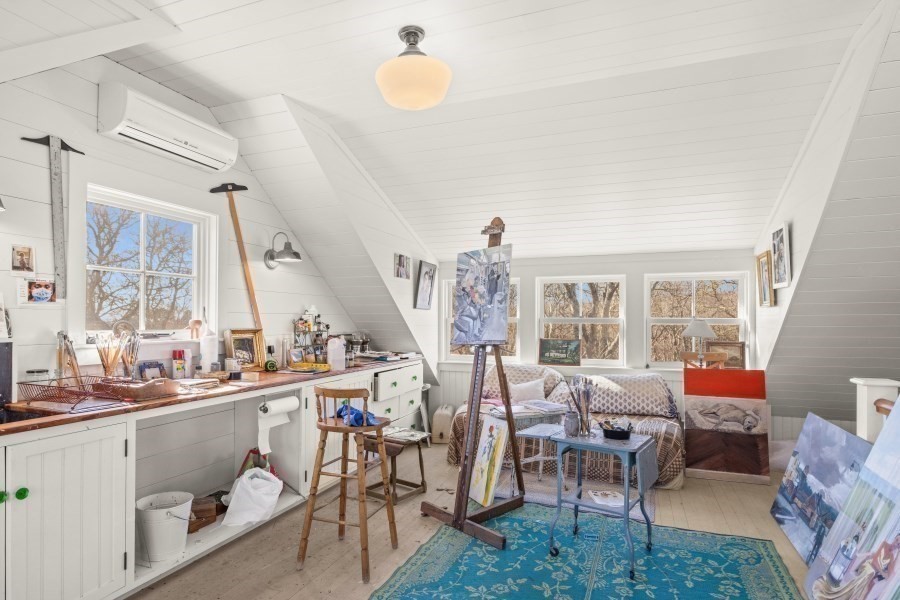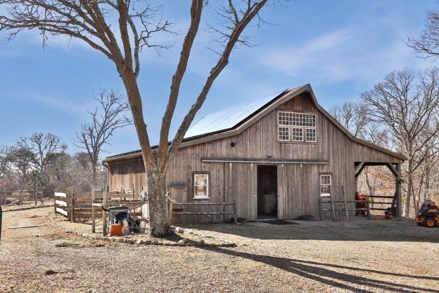 CLASSIC CHILMARK RETREAT. Set on nearly six acres of picturesque land, this beautifully restored and expanded modern farmhouse offers a seamless blend of timeless Vineyard character and contemporary comfort. The 3-bedroom, 3.5-bath main residence spans approximately 5,400 square feet of thoughtfully designed living space, highlighted by a sun-filled open kitchen and living area anchored by a striking central fireplace—ideal for both everyday living and entertaining. An expansive primary suite wing features a spacious bedroom, full bath, private office, half bath, and dedicated laundry. The second floor offers flexible space for a studio, office, or media room, while a classic three-season room invites relaxed enjoyment of the surrounding landscape and distant winter water views. Perfect for compound living, the property includes a guest house, horse barn, fenced pasture, garage, and historic boat shed. Deeded access to Chilmark Pond and South Shore Beach completes this property.