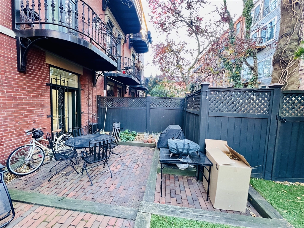 2-bedroom, 1-bath residence with a private 500 sq ft backyard and 1 designated off-street parking space with direct access to the unit at 150 Appleton, the former Bancroft School. Available May 1, this South End home offers an open living and dining area with high ceilings, tall windows, ample natural light, and direct access to the private patio and yard. The kitchen includes granite counters, stainless steel appliances, and generous cabinet storage. The primary bedroom features multiple closets and French doors to the yard, while the second bedroom offers a spacious layout and a large closet. Renovated tile bath, in-unit laundry, and central A/C add everyday comfort and function. Approx. 4 minutes to Prudential Center, 5 minutes to Back Bay Station, 7 minutes to Copley Square, and near Boston Public Library, Titus Sparrow Park, South End restaurants, shopping, and Back Bay amenities. No pets.