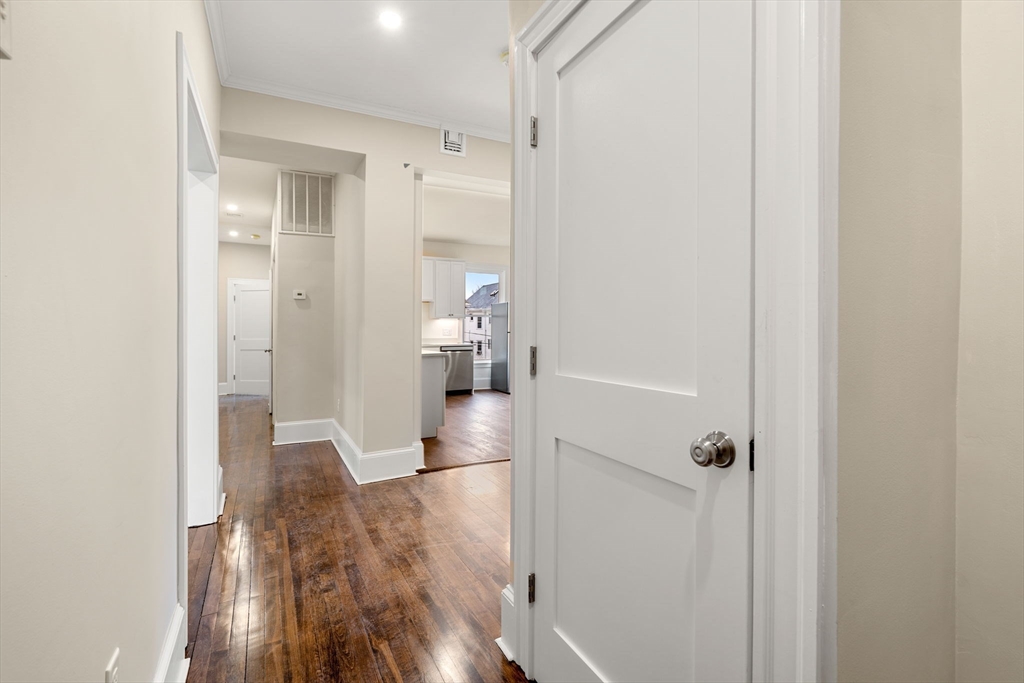Modern and spacious 3-bedroom, 1-bath apartment located on a quiet one-way street just moments from the Shawmut T Station (Red Line), with off-street parking and in-unit laundry. This well-appointed home features hardwood flooring, high ceilings, recessed lighting, and central A/C and heating throughout. The contemporary eat-in kitchen comes fully equipped with modern appliances, soft-close cabinetry, stone countertops, and under-cabinet lighting perfect for both everyday living and entertaining. A generously sized living room and wide central hallway create an open, comfortable layout, while a dedicated laundry room offers additional storage. Each bedroom is thoughtfully positioned for privacy, and the updated bathroom features a classic subway-tiled shower and ample storage. Conveniently located near major highways, parks, public transportation, and local shopping.