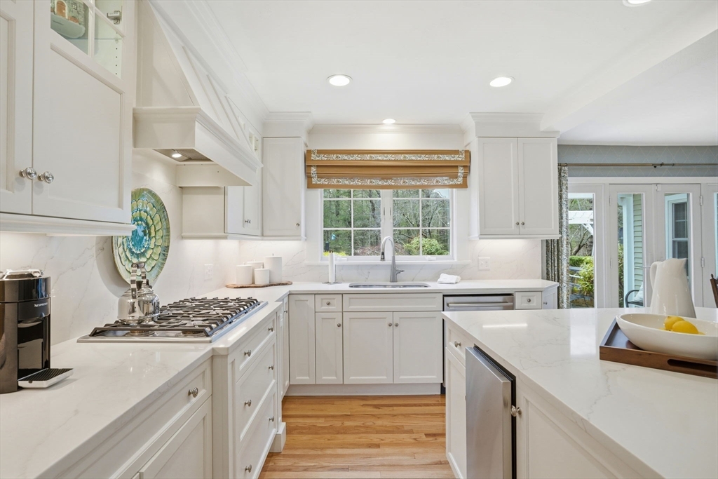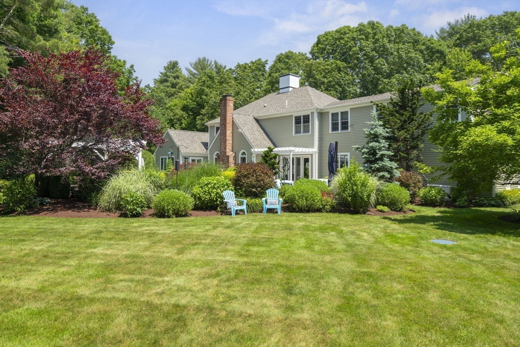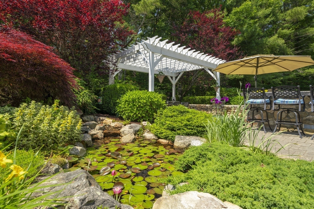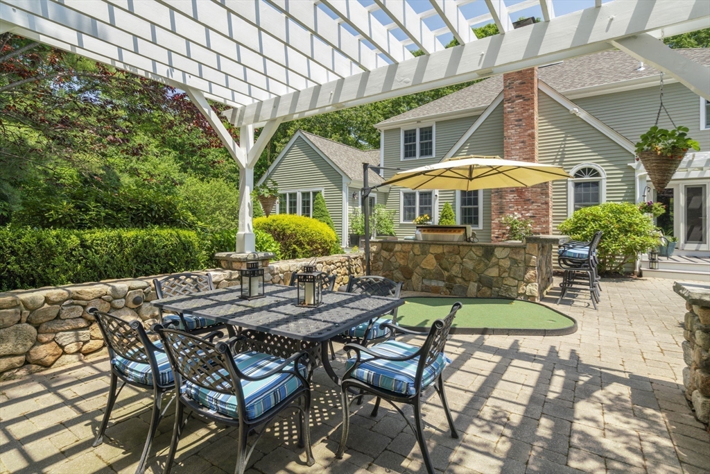 A private outdoor oasis sets the tone for this exceptional home, where custom stonework, a pergola, fire pit, and outdoor kitchen create a stunning setting for effortless entertaining. Inside, a dramatic sunken living room with soaring two-story vaulted ceilings serves as a striking architectural centerpiece. The kitchen by Timeless Design features newly installed quartz Mont Blanc countertops and high-end appliances, thoughtfully designed for both everyday living and hosting. Two primary suites—one on the first floor and one on the second—offer rare flexibility for a variety of living arrangements. The finished walkout lower level includes a full bath, gym, and versatile living space ideal for a game room, guest retreat, or post-beach hangout. Sidewalk access nearby connects to Millbrook Village, schools, and local amenities.