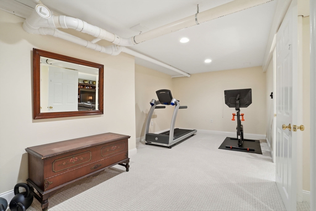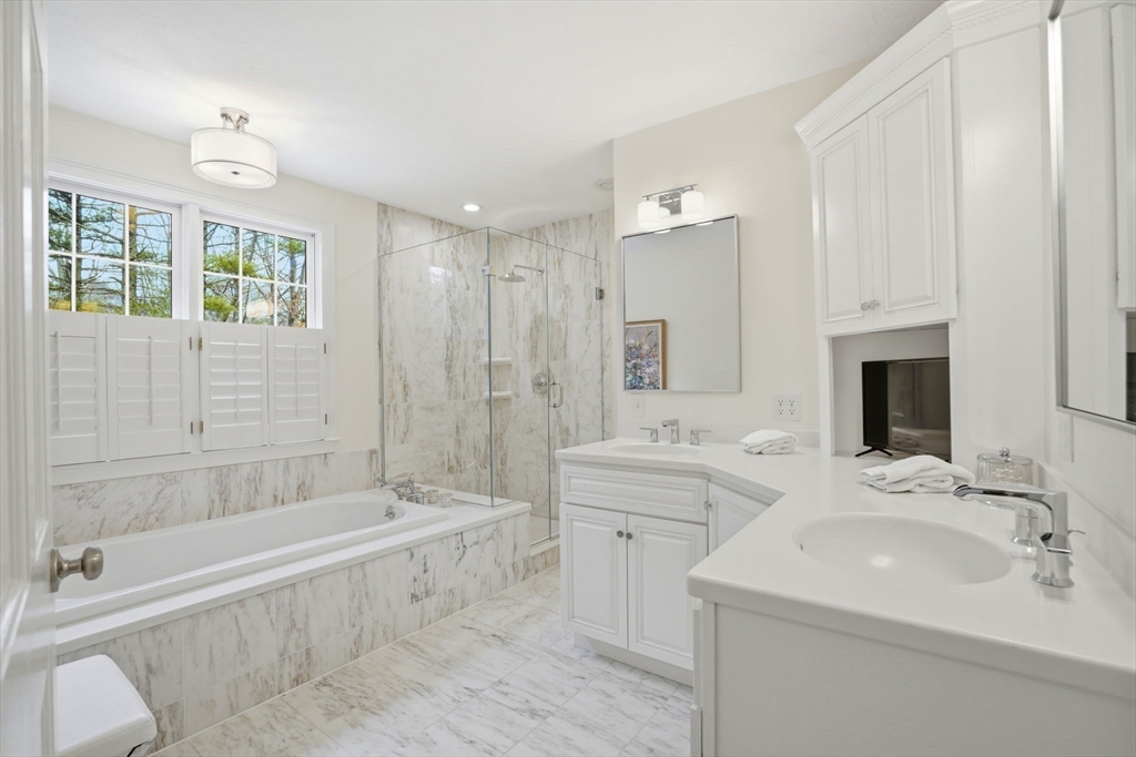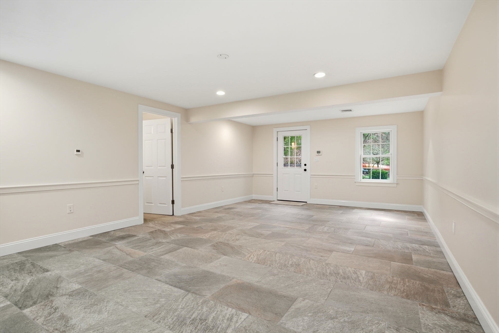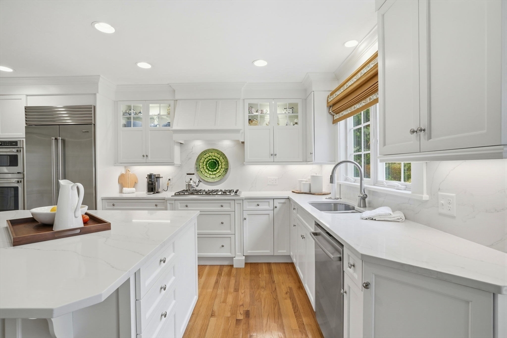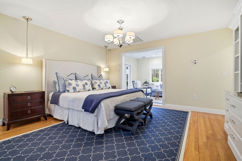 A private outdoor oasis sets the tone for this exceptional home, where custom stonework, a pergola, fire pit, and outdoor kitchen create a stunning setting for effortless entertaining. Inside, a dramatic sunken living room with soaring two-story vaulted ceilings serves as a striking architectural centerpiece. The kitchen by Timeless Design features newly installed quartz Mont Blanc countertops and high-end appliances, thoughtfully designed for both everyday living and hosting. Two primary suites—one on the first floor and one on the second—offer rare flexibility for a variety of living arrangements. The finished walkout lower level includes a full bath, gym, and versatile living space ideal for a game room, guest retreat, or post-beach hangout. Sidewalk access nearby connects to Millbrook Village, schools, and local amenities.