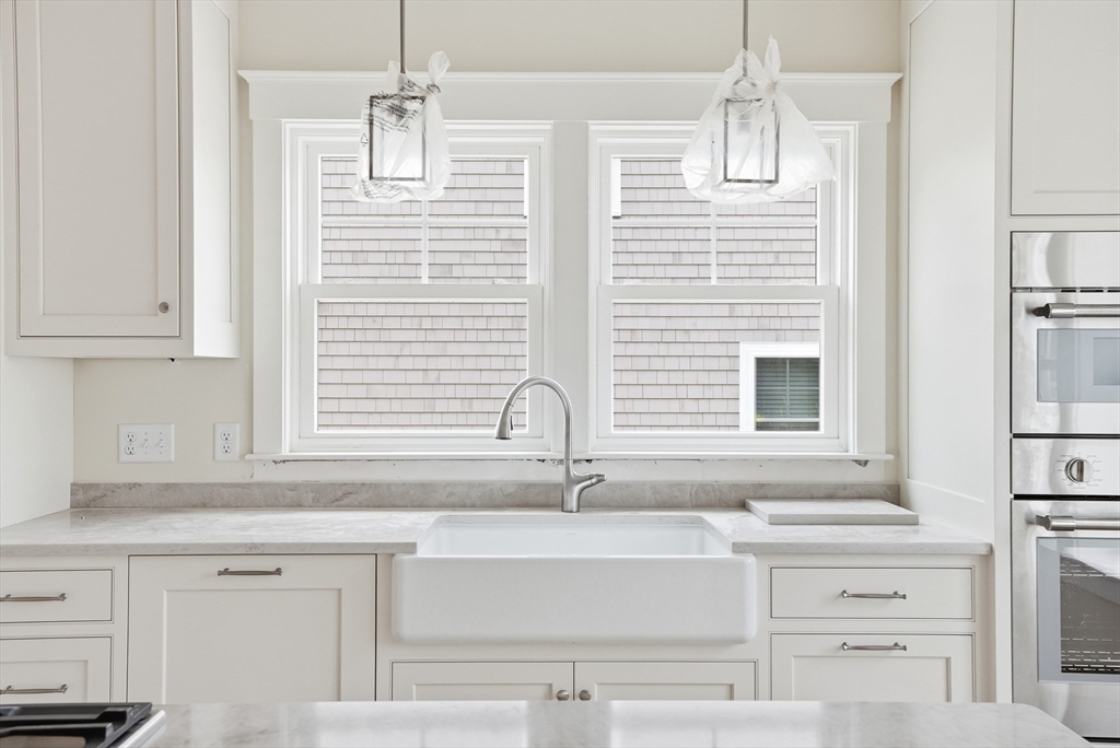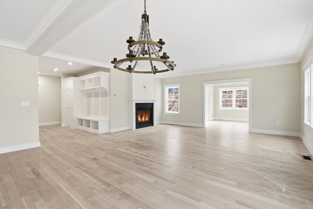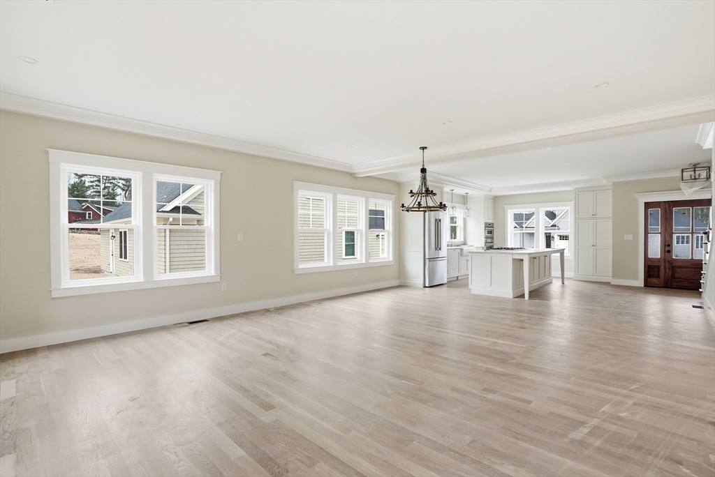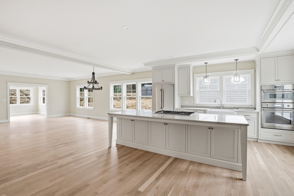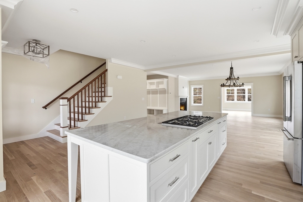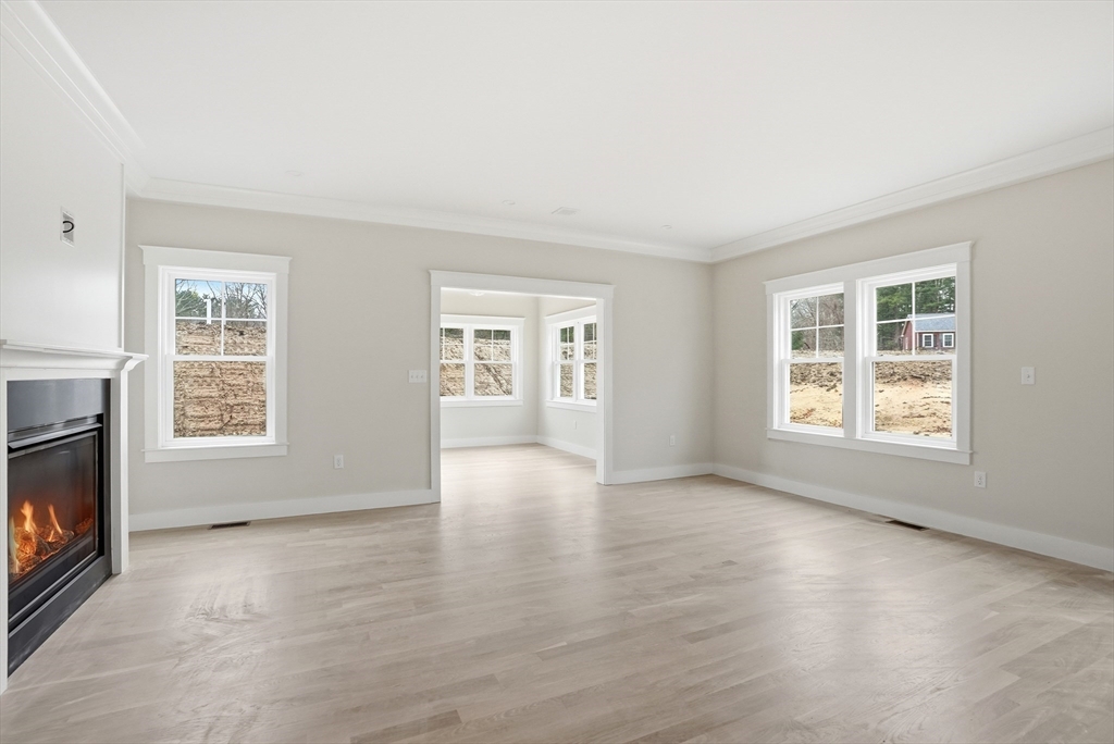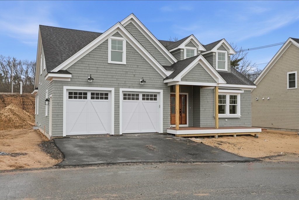 Welcome to 4 Fieldstone Farm Way in Duxbury, located in the desirable 55+ Fieldstone Farm community. A beautiful covered porch entry with a rich mahogany door sets the tone for this exceptional 2,630 sq ft residence, thoughtfully designed for elegant first-floor living. The main level features a luxurious primary suite with cathedral ceilings accented by wood plank detail, a custom walk-in closet, and a spa-like bath with double vanity and tiled walk-in shower. The open-concept living space showcases a designer kitchen with Thermador appliances, an oversized island, and custom cabinetry by Faneuil Kitchen Cabinet, seamlessly flowing into the dining area, living room, and sunroom overlooking a private patio—ideal for relaxing or entertaining. The second floor offers a spacious loft and private guest suite. Additional highlights include a two-car garage and full basement. Enjoy elevated, low-maintenance living in one of Duxbury's premier neighborhoods.
