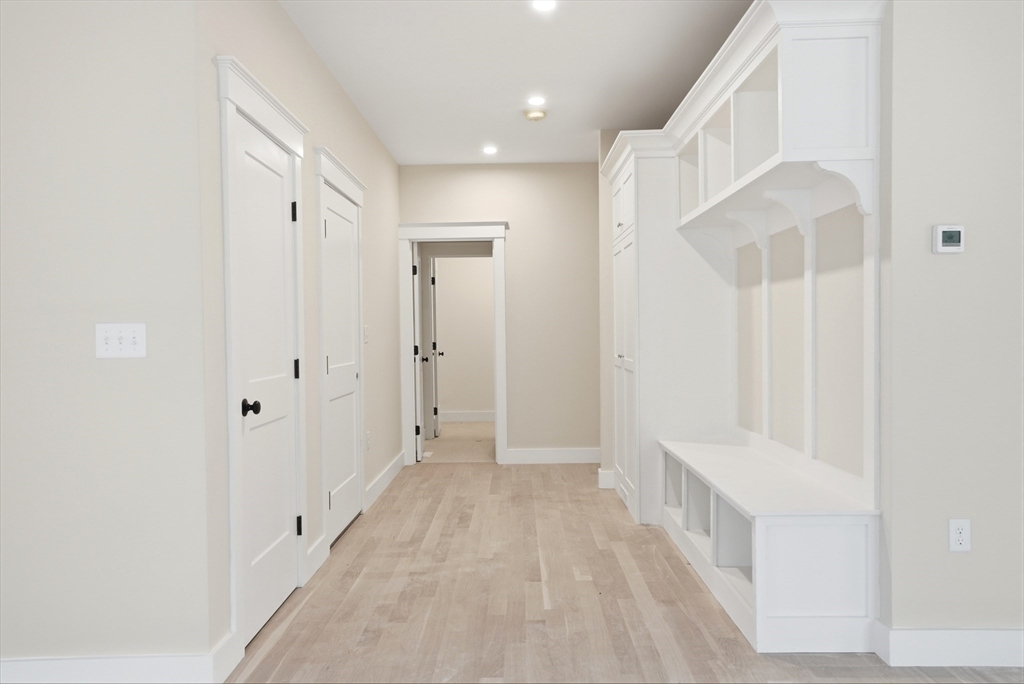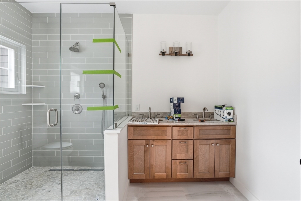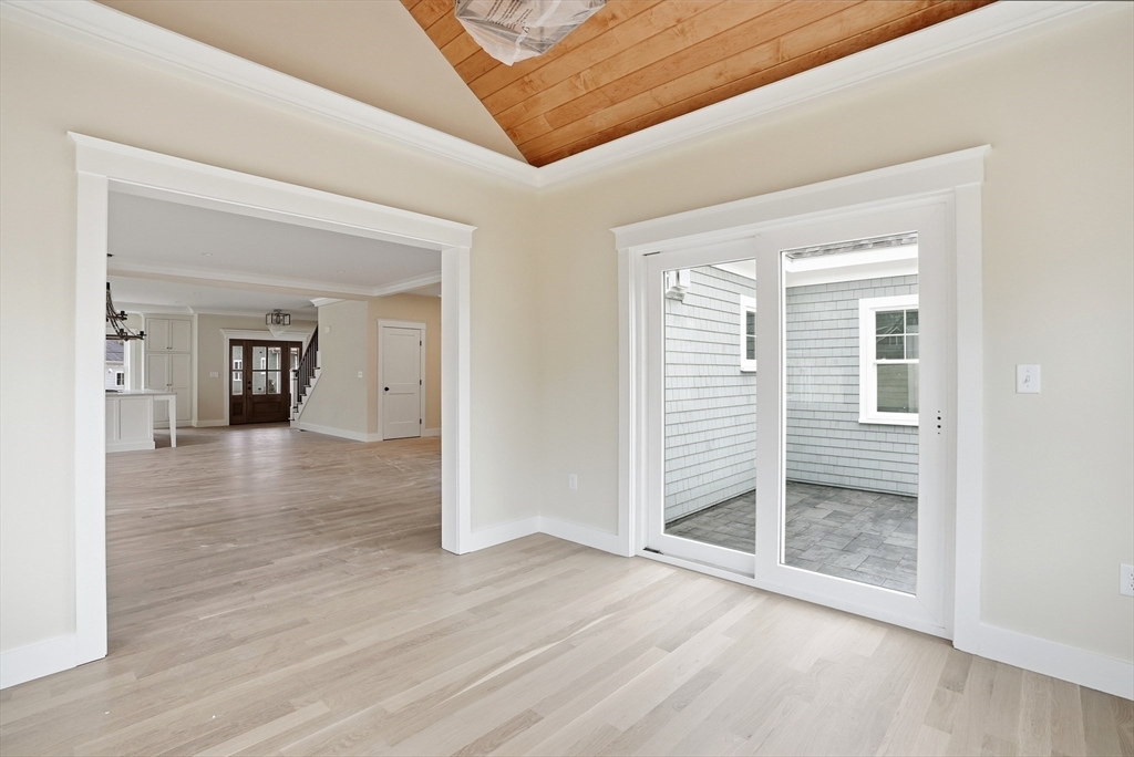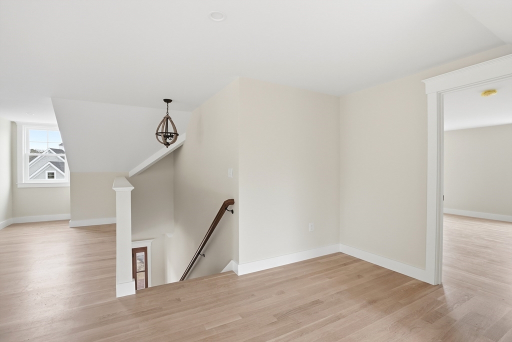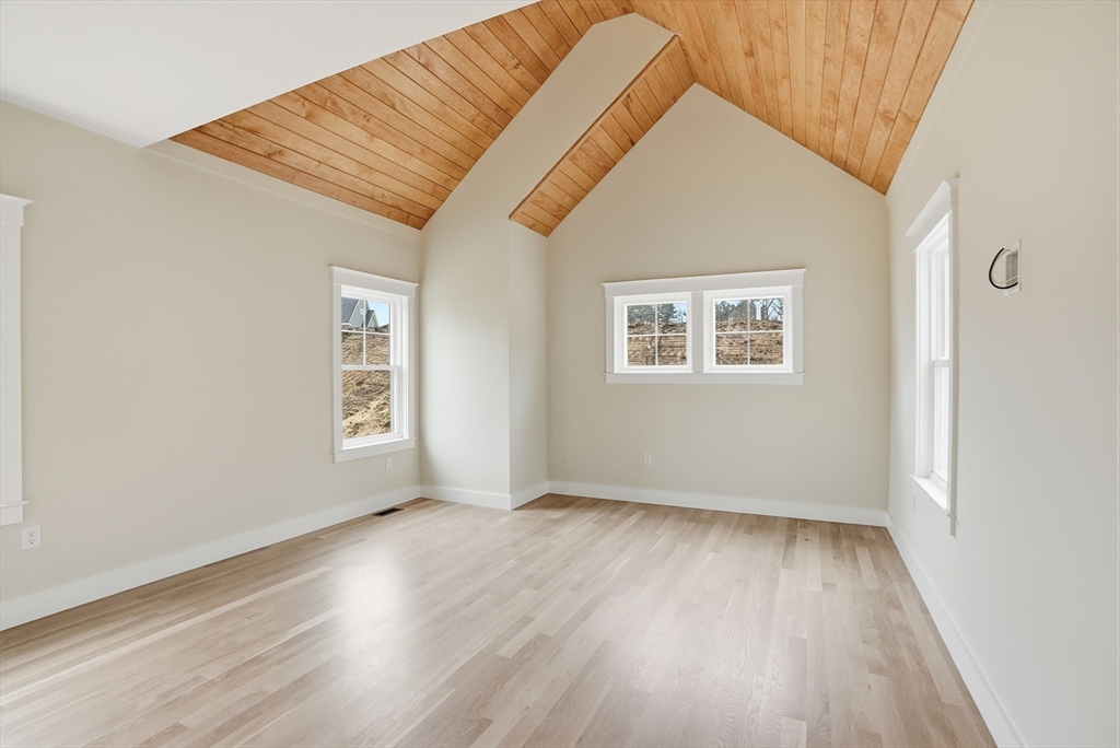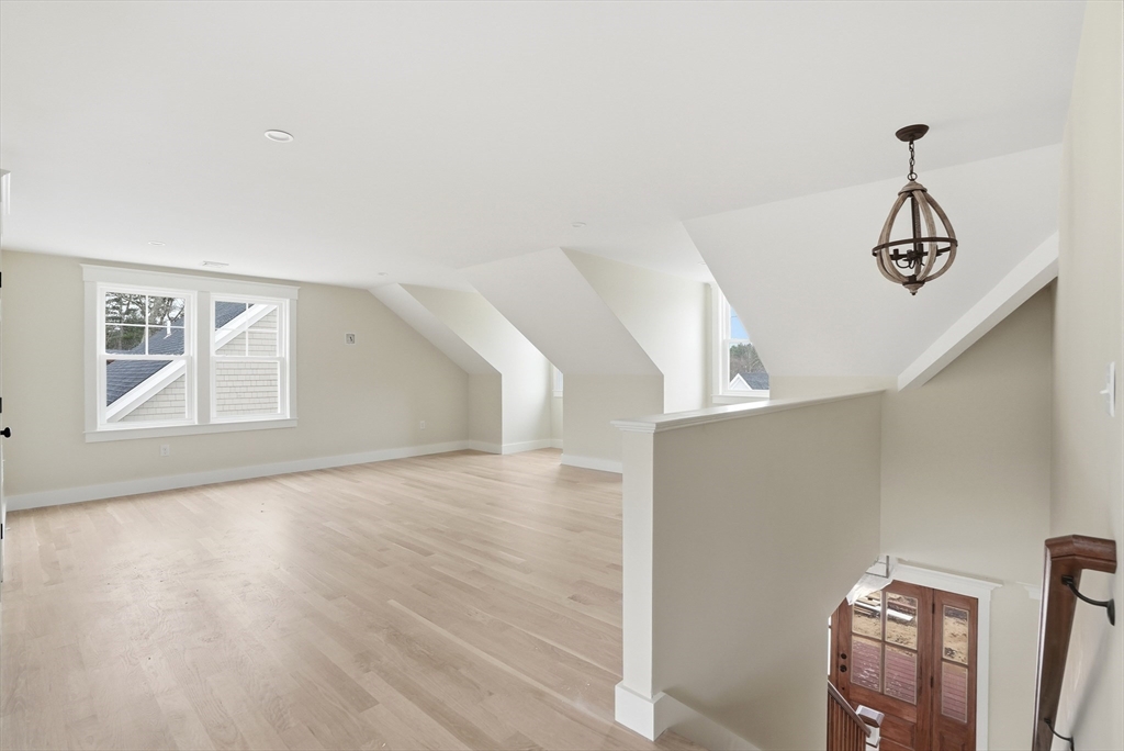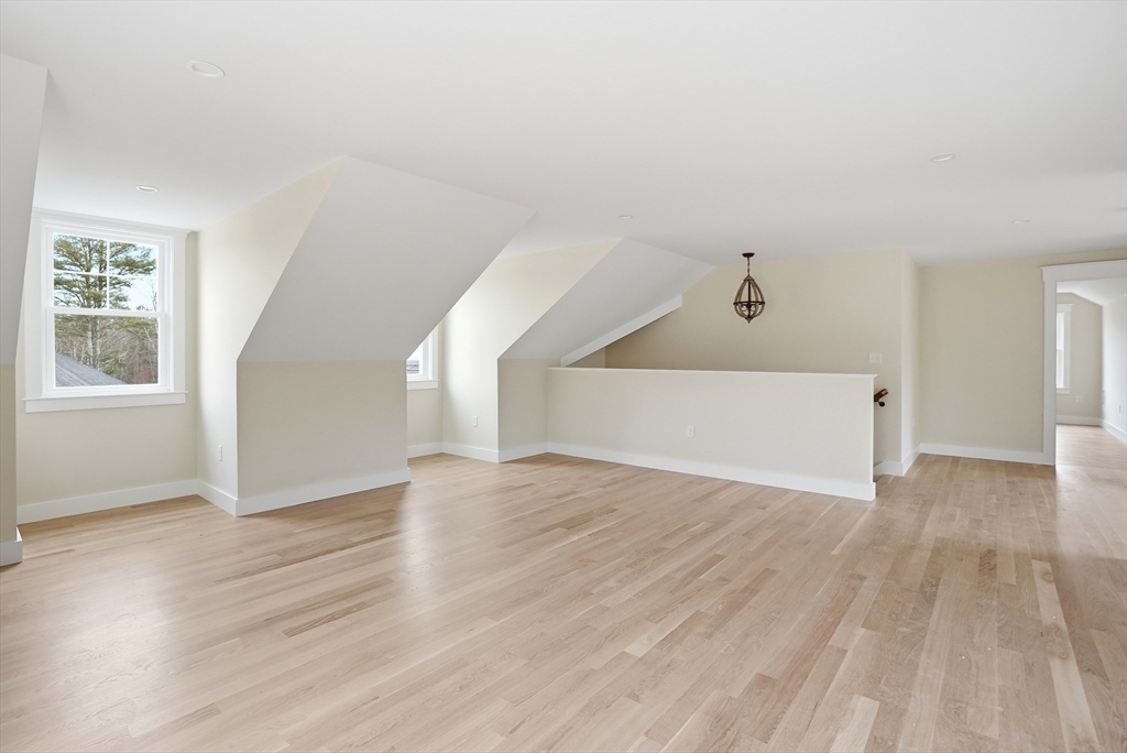Welcome to 4 Fieldstone Farm Way in Duxbury, located in the desirable 55+ Fieldstone Farm community. A beautiful covered porch entry with a rich mahogany door sets the tone for this exceptional 2,630 sq ft residence, thoughtfully designed for elegant first-floor living. The main level features a luxurious primary suite with cathedral ceilings accented by wood plank detail, a custom walk-in closet, and a spa-like bath with double vanity and tiled walk-in shower. The open-concept living space showcases a designer kitchen with Thermador appliances, an oversized island, and custom cabinetry by Faneuil Kitchen Cabinet, seamlessly flowing into the dining area, living room, and sunroom overlooking a private patio—ideal for relaxing or entertaining. The second floor offers a spacious loft and private guest suite. Additional highlights include a two-car garage and full basement. Enjoy elevated, low-maintenance living in one of Duxbury's premier neighborhoods.