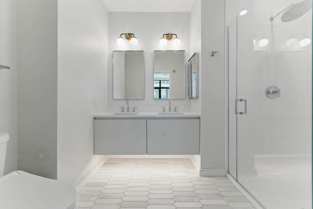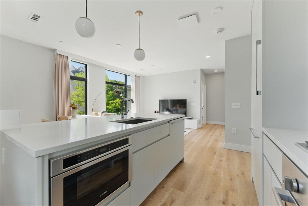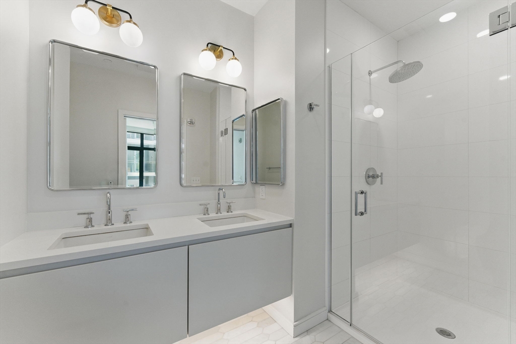 Available for 9/1 move-in, this sun-filled 2 bed, 2 bath condo in one of Brighton’s most desirable luxury buildings offers modern design, great natural light, and a functional split-bedroom layout for added privacy. The open living and dining area features floor-to-ceiling windows with beautiful church views. The spacious primary suite includes a walk-in closet and en-suite bath with double vanity and glass shower. The second full bath includes a soaking tub. The kitchen is outfitted with premium Bosch appliances, including a panel-front refrigerator and built-in dishwasher. Offered furnished for easy move-in, and the landlord can also remove all furniture if preferred. One garage parking space for rent. Full-service building amenities include concierge, rooftop terrace, fitness center, lounge, library, and more. Close to Whole Foods, the MBTA Green Line, shops, and dining.
