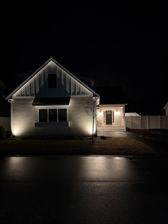 Beautifully crafted new construction 3 bedrooms 3 bath home with 2 car garage offering modern coastal living just 2 miles to Chapoquoit beach. This great location is also just about 2.5 miles to the lovely historic downtown Falmouth Village with all shopping, restaurants & coffee shops. Enjoy high-end finishes throughout including quartz countertops, fireplace, central AC, walk-in closet, cathedral ceilings and spacious open floor plan. Entertain on the rear deck overlooking a fully fenced yard perfect for pets or summer BBQs. Outdoor lighting were added throughout which makes the house stand out beautifully. Potential of adding extra living space in the large unfinished attic. Development consists of 28 new homes .It abuts town conservation land with walking paths and the future YMCA.