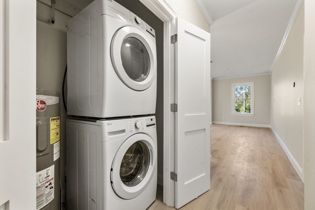 Introducing Gateway at Millis! A NEW CONSTRUCTION, owner managed, premium high efficiency apartment building with a total of 16 - 1, 2 & 3 bedroom units. Unit 303 is a spacious 2 bedroom unit with high end tasteful details, INCLUDING IN-UNIT LAUNDRY. Large windows facing south flood the apartment with natural light and provide a beautiful view of woodlands. Wood laminate flooring throughout the living areas offer a modern design. Premium carpeted bedrooms with large closets. The primary bedroom offers a private bath. Cornered on dead-end street and within walking distance to spectacular views of the Charles River and kayak/canoe launch. This is a high efficiency unit using no fossil fuels. Tenant is responsible for water and electricity. Landlord seeking a tenant with 700+ credit score. There is a $50 per month cat fee and a $75 per month dog fee.