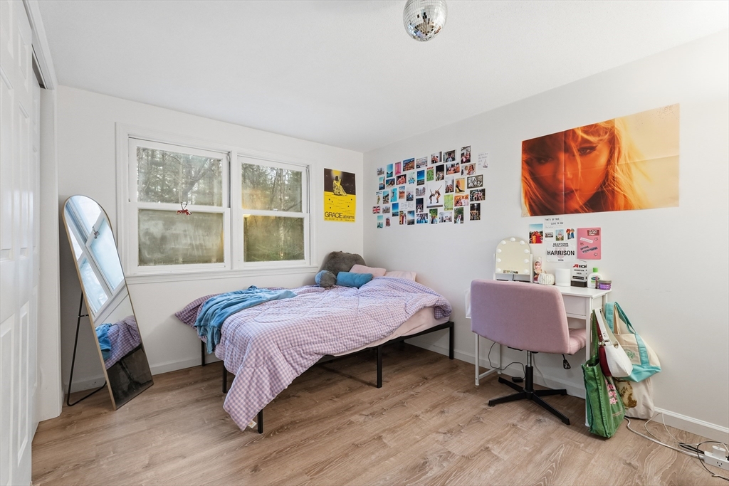 Move-in ready Cape on a low-traffic street in sought-after Echo Hill North, set on a quiet .45-acre lot just minutes to Amherst Center, UMass, and local amenities. Thoughtfully updated throughout, the first floor features oversized windows that bring in abundant natural light, a spacious living room with fireplace, an eat-in kitchen with refinished cabinetry, and a dining area with slider to the deck. A flexible layout across two levels offers five bedrooms and two full baths. Full, high-ceiling basement with laundry and workshop. The attic with windows above the two-car garage provides additional versatile space. Major upgrades include a new energy-efficient heat pump (2024), luxury vinyl plank flooring, fresh interior and exterior paint, and upgraded insulation—minimizing near-term capital needs. Enjoy access to Echo Hill trails and pond, convenient proximity to Hampshire Athletic Club, and a nearby PVTA bus line. A rare opportunity in a neighborhood with strong recent demand.