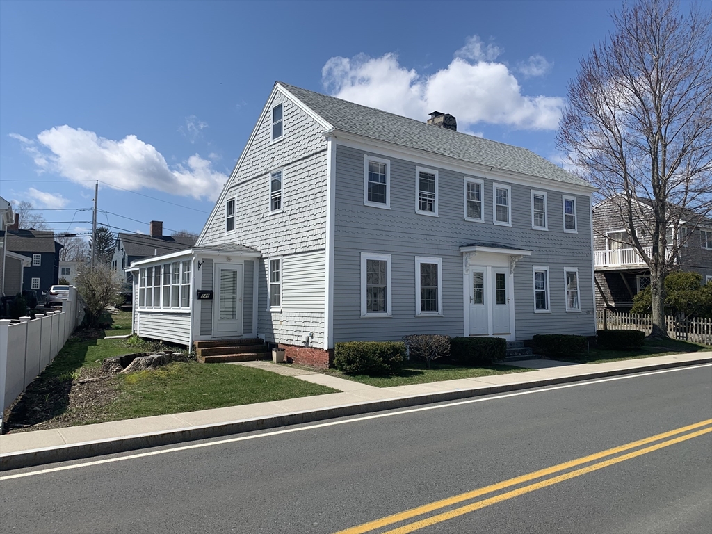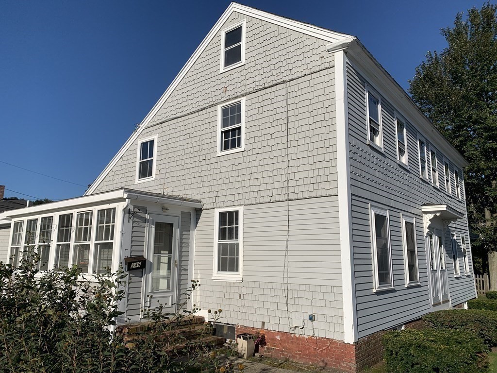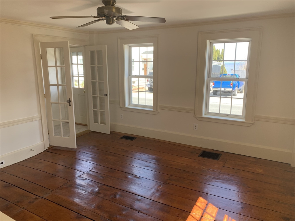 Due to huge response of inquiries, we are holding on booking more showings for now. This charming half house features wonderful views of the historic harbor across the street. There are newly refinished wide pine floors, and lots of antique charm. The apartment is convenient to town. A three season porch has front and side views of the water. A brand new kitchen was just completed as well as an updated bath. There is a dining room and office on the first floor. The fireplaces are decorative only. The bedroom on the second floor has a large closet and extra storage. There is basement storage with a shared washer and dryer. Parking is assigned for one car, and there is a shared yard area to enjoy. Schedule a showing for your new home today. Smoking is not allowed, and PETS are not allowed, and good credit will be required. 24 hour notice required for showings.