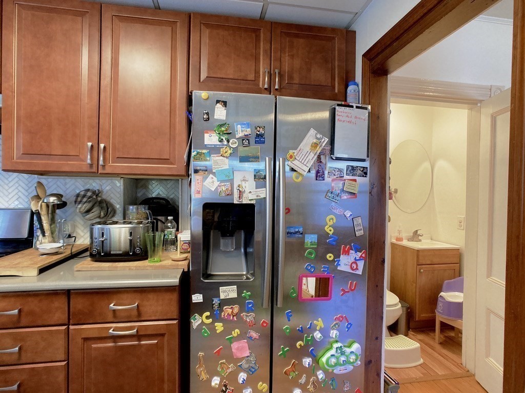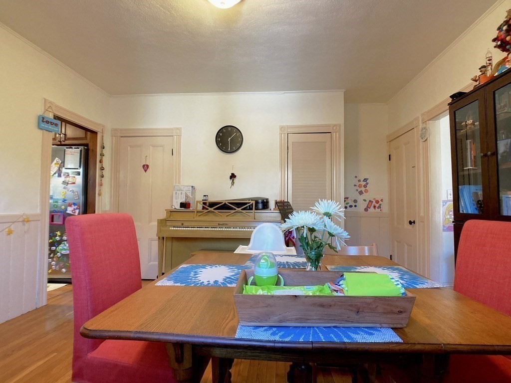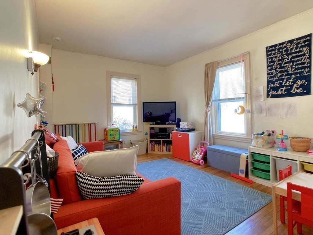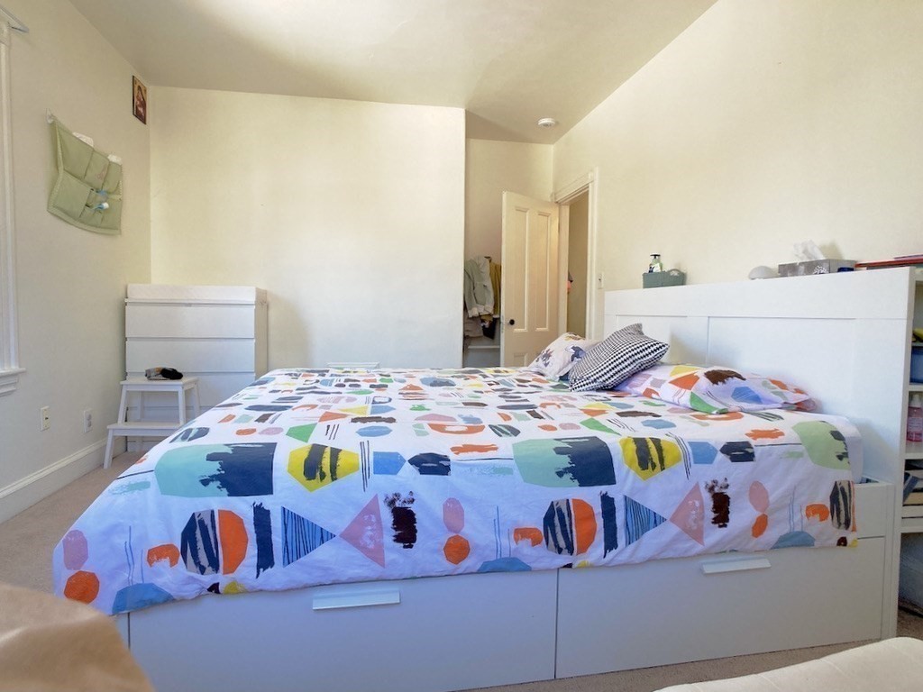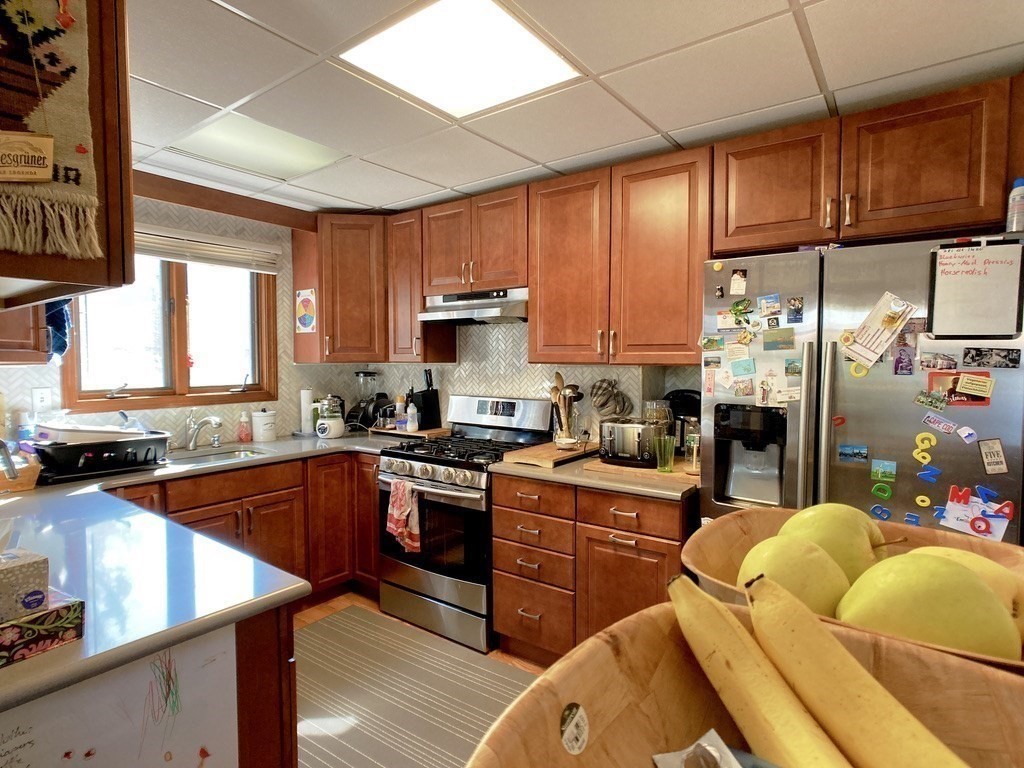 FARM HOUSE NEWTON CENTRE DUPLEX ON DEAD-END STREET! This unit features two levels; 1st floor offers a new Eat in Kitchen, Stainless Steel Appliances, Breakfast Bar, Gas Stove, Exceptional Cabinet Storage, Living Room, Dining Room & 1/2 Bath. H/W Floors on 1st level. The 2nd Floor features two generous-sized Bedrooms with W/W in Main & Wood Floors in Second Bedroom, Study & Full Bathroom. Plenty of storage in basement with Laundry hook-ups. Driveway Parking for 2 cars! Huge Shared Yard! Close to Newton Center Amenities and T. NO PETS!