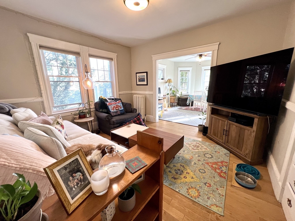 Beautiful 2 bedroom condo with off-street parking located near Porter Square. A classic Cambridge layout welcomes you with a large entry foyer and a bright bow windowed living room that opens into formal dining room with gleaming hardwood floors throughout. A gorgeously renovated eat-in-kitchen that boasts of stainless steel appliances and granite countertops. The two bedrooms are both quite spacious. The bathroom hosts is well appointed, and there is an in-unit laundry room right off kitchen. Front & back porches perfect for your morning coffee or summer evenings. Well located for easy access to Porter Square Red Line T, restaurants, shopping. Professionally managed. Available August 1st, 2026.