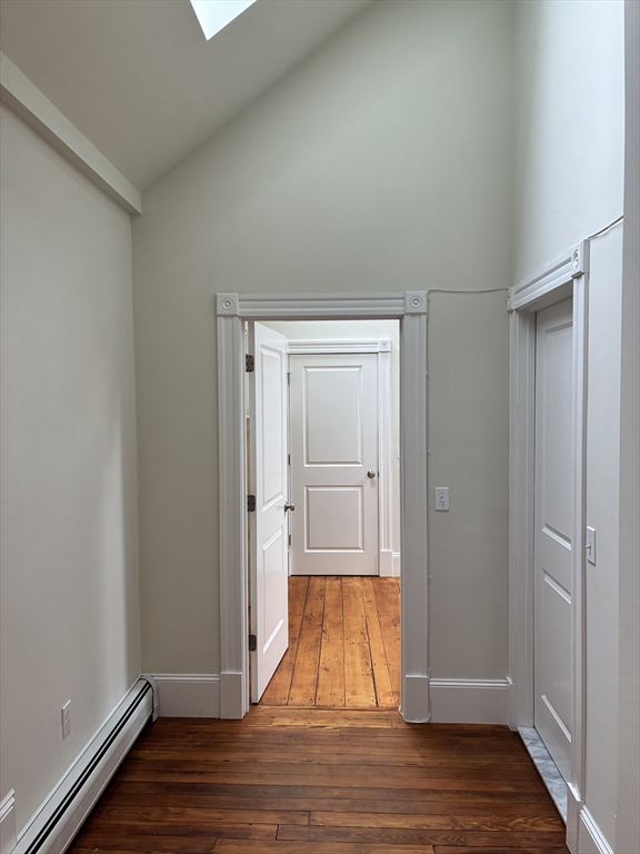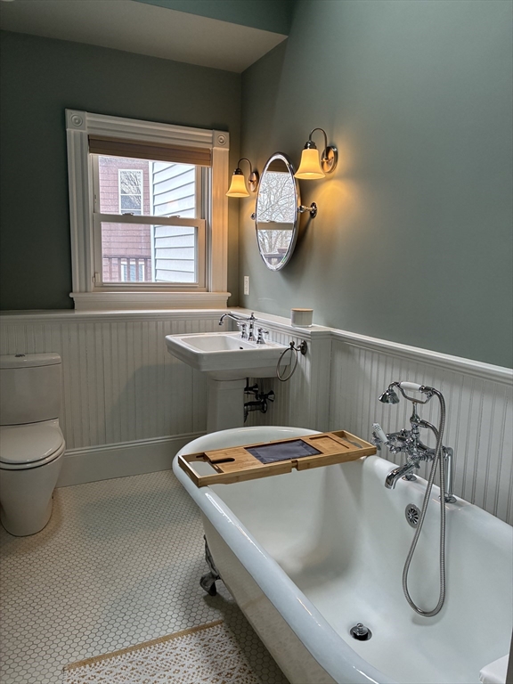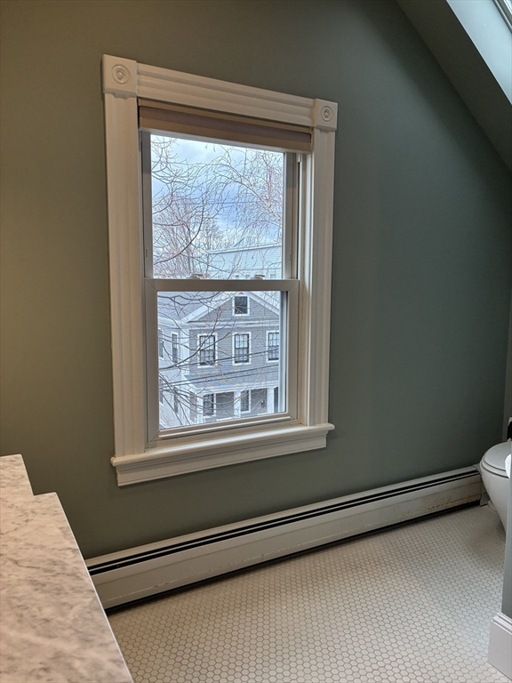 Spacious and elegant 1,650 sq ft 2nd floor Victorian loft-style condo with an abundance of natural light, period details and modern updates. Open-concept LR/DR/chef's kitchen with stainless steel appliances, granite countertops, gas cooking and plenty of cabinets. An adjacent wet bar and beverage refrigerator is perfect for entertaining. Bedroom with vaulted ceiling, skylights and ceiling fan and a bath with a claw-foot soaking tub, beadboard wainscoting and skylight complete the main level. Gracious staircase leads to the 3rd floor primary bedroom with vaulted ceiling, skylights and ceiling fans, multiple closets, a laundry closet and a beautiful en-suite with shower stall, vanity with a marble countertop, skylight and pocket door. Exclusive decks for relaxing in the fresh air. Hardwood and wide pine floors, in unit laundry, three mini splits provide air conditioning. Private entrances, off street parking for one car and extra storage in shared basement. Close to Porter Sq!