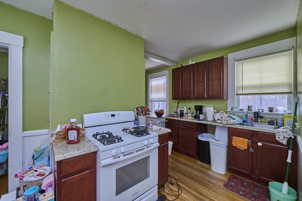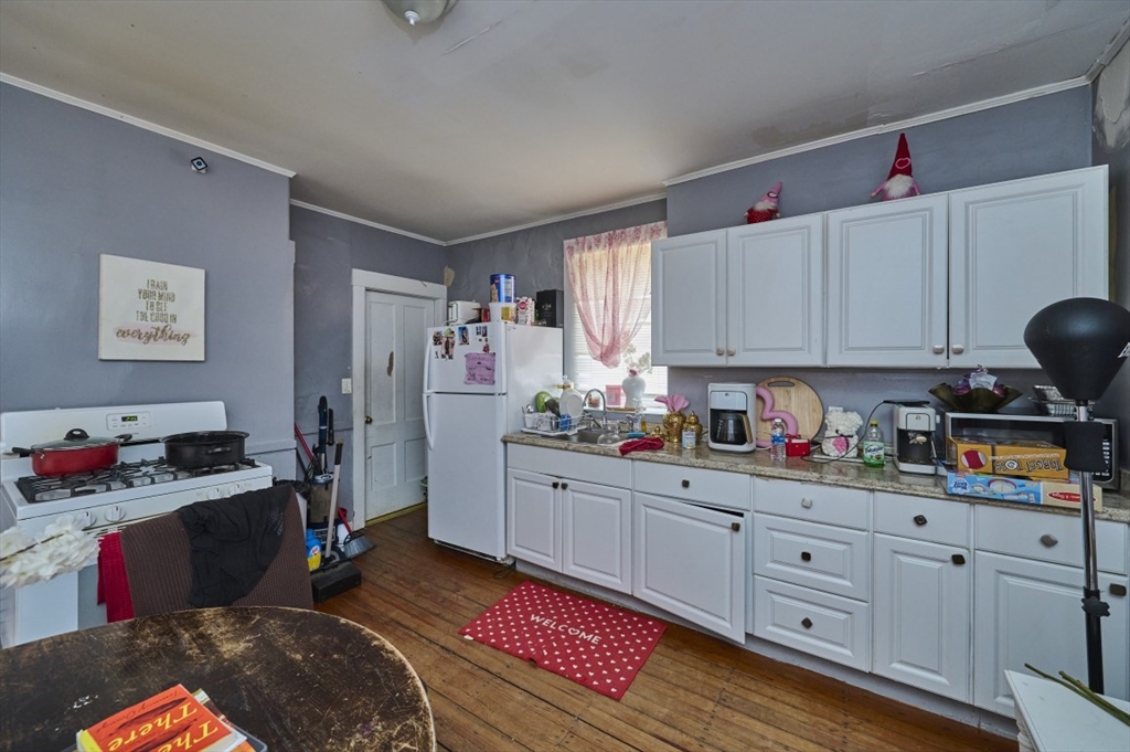 Opportunity knocks for the buyer/investor - ONLY $369.9K! Character abounds in this Circa 1882 two-family home, offering curved walls, arched windows, original flooring, slate roof, granite foundation, 6+ parking spaces. Attention: This property is in need of a good amount of TLC - price is reflective. One heating, electrical, water heater for the property. The 1st flr offers 2-beds, 1 bth, LR, E/I kit. The 2nd flr offers 3+ beds/1 bth, pantry, E/I Kit, LR ~2380 sf of living throughout. Additional space includes large attic on the 3rd flr (not heated currently) offering the potential for 3 bedrooms each complete w/ window & closet. The kitchens & floors were updated/refinished when the current owner purchased the property 9 yrs ago. Other features include a French drain, new water heater, oversized flat yard, coin-op lndry, sump pump,100-amp circuit breakers, walk-in pantry/closet, & replacement windows. Prime location - near center of town, Fitchburg Univ., easy access to highways.
