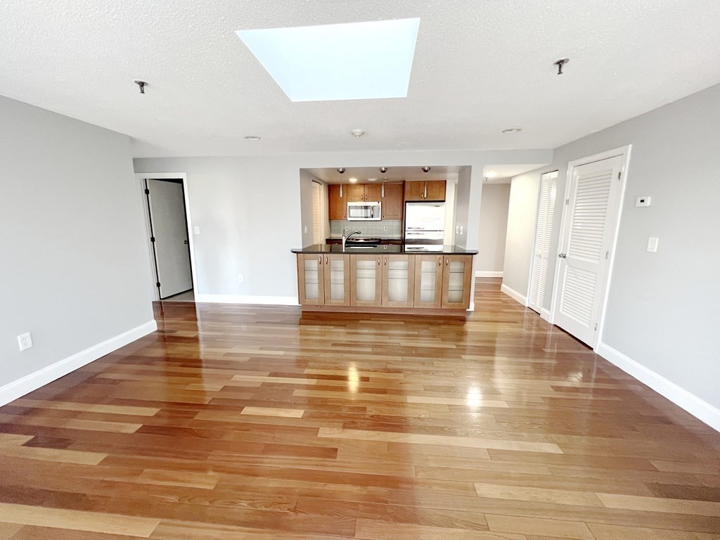 Bright renovated Coolidge Corner penthouse at Webster Place! Rare 2 bed/2 bath in a conceirge elevator building with garage parking, pool and concierge. Top-floor unit features skylights and a wall of windows with sweeping Boston and pool deck views. Updated kitchen with granite countertops, KitchenAid stainless steel appliances, and long breakfast bar with ample counter and storage space. Bright, open living area ideal for entertaining. Brazilian cherry hardwood floors, recessed lighting, generous closets, and in-unit washer/dryer. One garage space with addtional storage unit on the ground floor. Building amenities include elevator, concierge, fitness center, and seasonal outdoor pool. Just 1 block to the Green Line (C) and steps to Trader Joe’s, restaurants, and shops. Easy access to Longwood Medical Area, Fenway, and Brookline Village. Includes garage parking #78 and storage. Concierge 8.30am-8.30pm week days and 9am-1pm weekends.