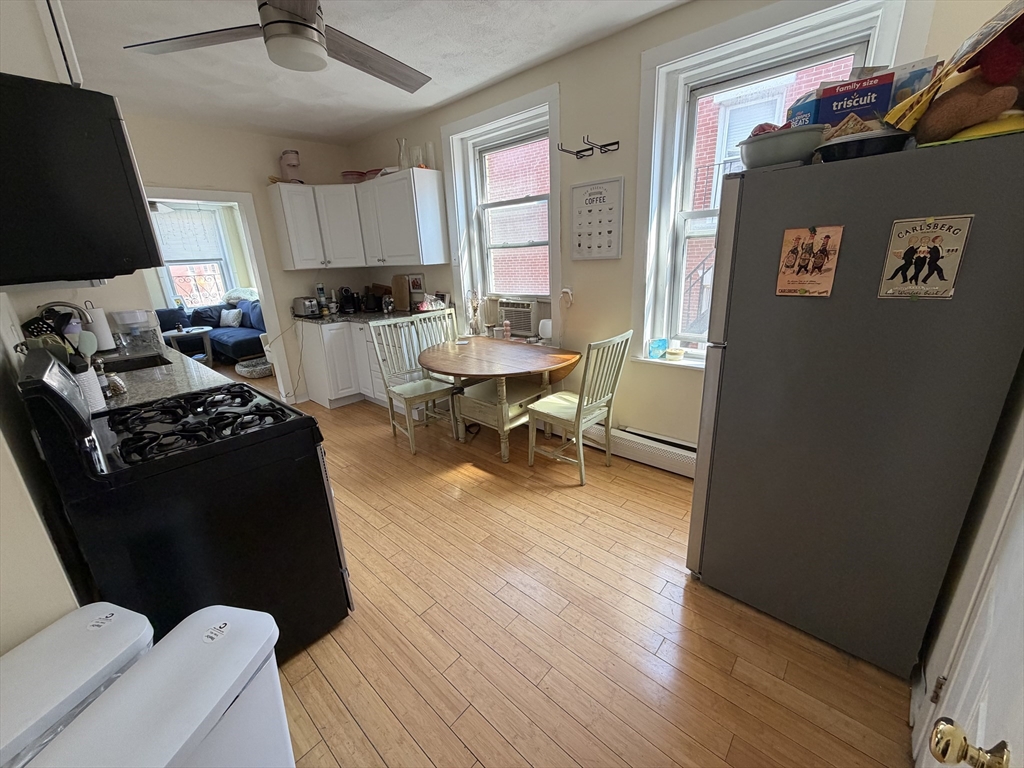 Recently renovated 4 bedrooms located in the bustling North End. 2 large eat in kitchens, with new cabinets and granite countertops and stainless steel appliances. Bright and naturally well lit apartment with clean and shiny hardwood floors throughout. Bedrooms are located on opposite sides of the apartment, do not share a wall allowing for additional privacy. 2 full bathrooms include walk in showers, with very hot water if desired. Heat and hot water are included in the monthly rent. Brand new washing machine and dryer located in the basement, common and coin operated often available.Free street parking with resident parking sticker and garage conveniently located across the street from the building. Across the street is a park. This is a rare opportunity to live in the North End of Boston, on a desirable and quiet street. Available for move in September 1, 2026. Must be ok with three flights of stairs.