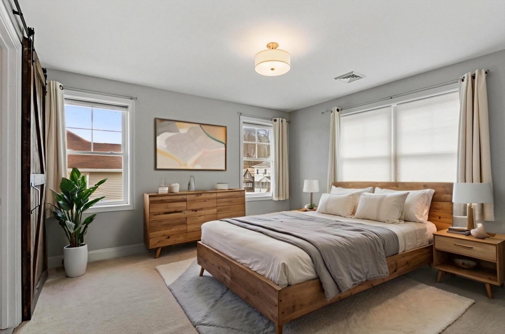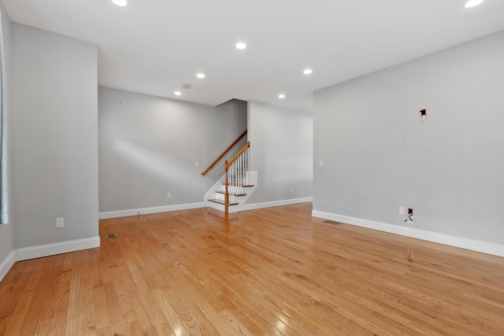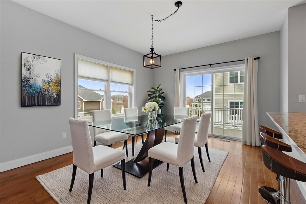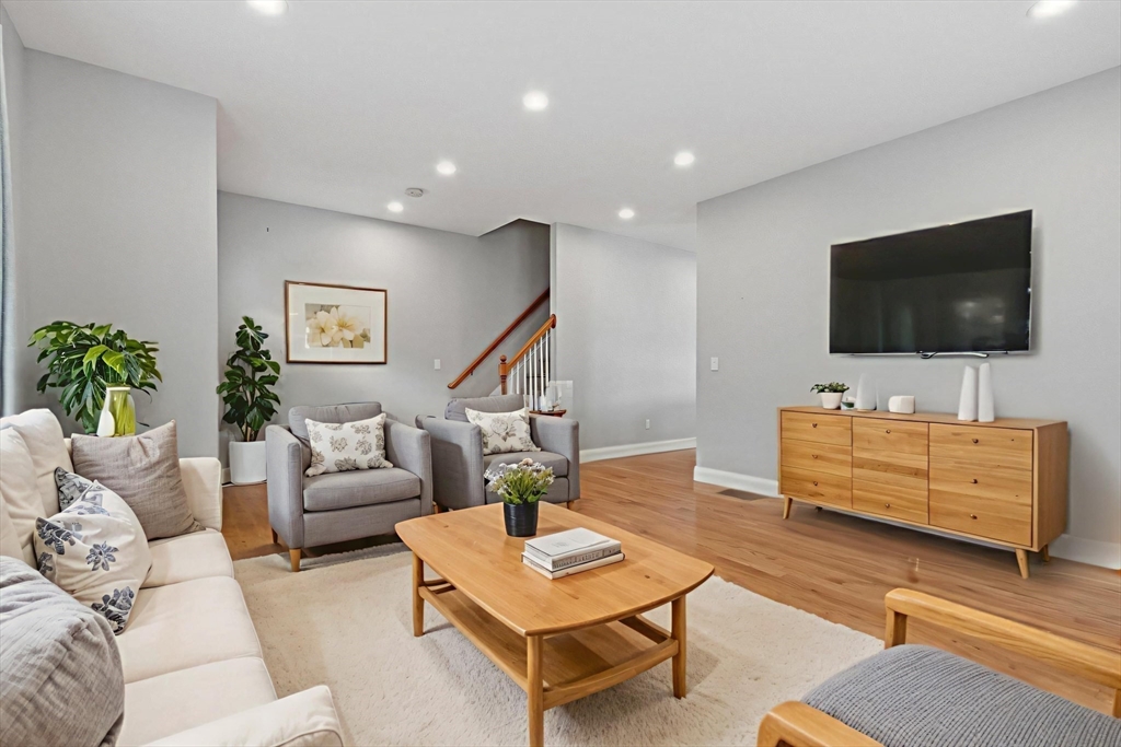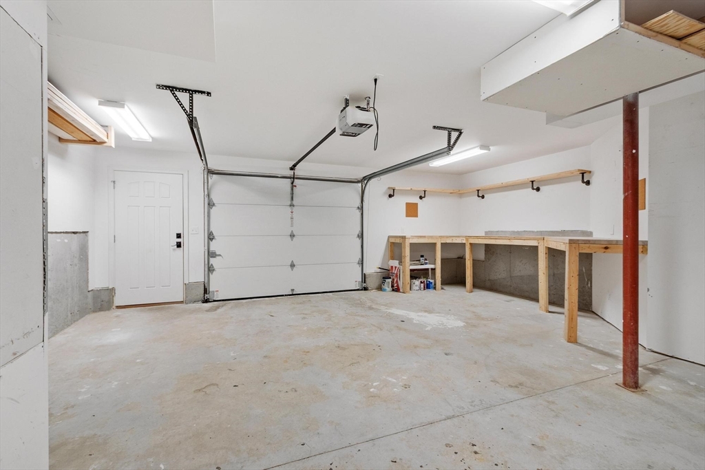 Come tour this spacious townhouse in beautiful Clinton Ma, offering a spacious floorplan and gleaming hardwood floors. The kitchen features a 10' custom granite island, stainless appliances, abundant cabinetry, and a large pantry, opening to a bright dining area ideal for entertaining. The second floor includes three bedrooms, a full bath, and a primary suite with its own bath and a generous walk-in closet. Additional highlights include central air, recessed lighting, tiled baths, reclaimed-wood accents, and excellent natural light throughout. A composite deck sits off the kitchen overlooking beautifully landscaped grounds. The under-garage and a half provides workshop space, a custom workbench, and ample storage, with a walkout basement offering easy access to the two-car off-street driveway. Enjoy the warm New England months on the composite deck. Additional storage in the basement.