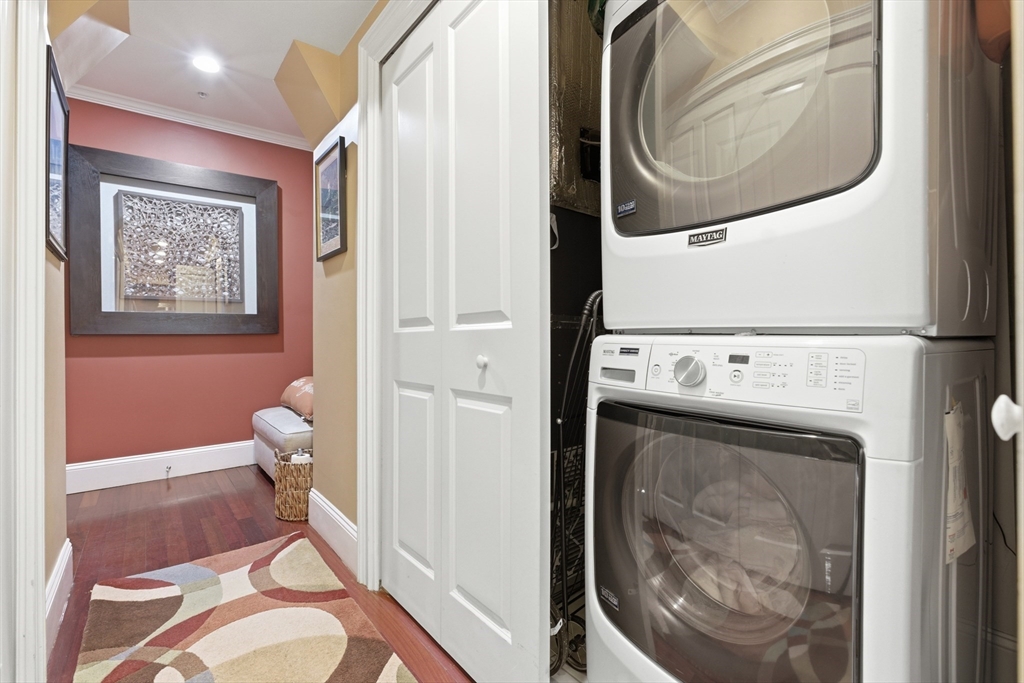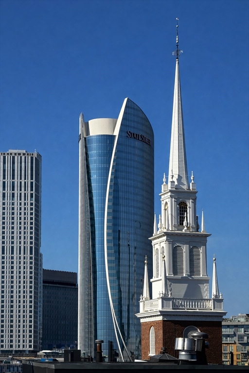 The View is the Thing! Amazing panoramic views from this massive roof deck! Stately & convenient 2BD w/exceptional natural light w/ open exposures. Features incl 1 garage pkg space, gas FP, & exclusive roof deck use space (within/on common roof deck) w/ unobstructed City and Harbor views. Thoughtfully designed open living/dining layout w/ walls of windows, Brazilian cherry HW floors & recessed lighting. Professionally designed kitchen w/ SS appl, gas range, breakfast bar & granite countertops + backsplash. King-sized primary BR w/ corner exposure & generous closet + guest BR w/ good closet space. Bath w/ custom tile, jetted tub/shower & updated vanity. Add’l highlights incl high ceilings, crown moldings & in-unit W/D. Mid-sized, prof managed elevator bldg w/ high owner occupancy, on-site mgmt team & sharp common spaces. Ideally located along the Waterfront’s primary footpath, steps to Downtown, Faneuil Hall, Seaport, Financial District, North End, TD Garden, South Station...
