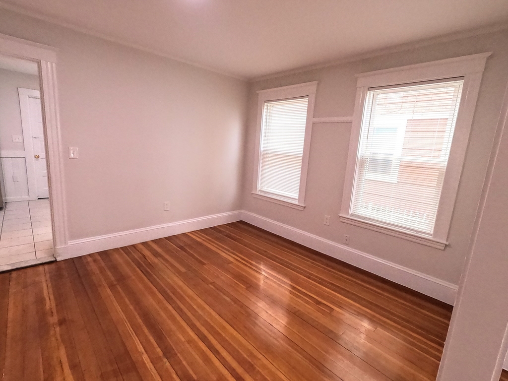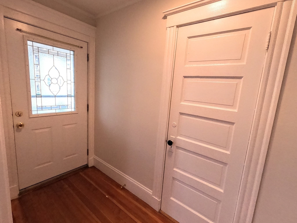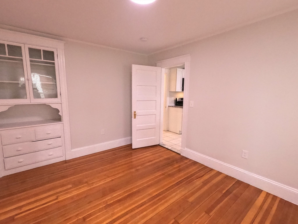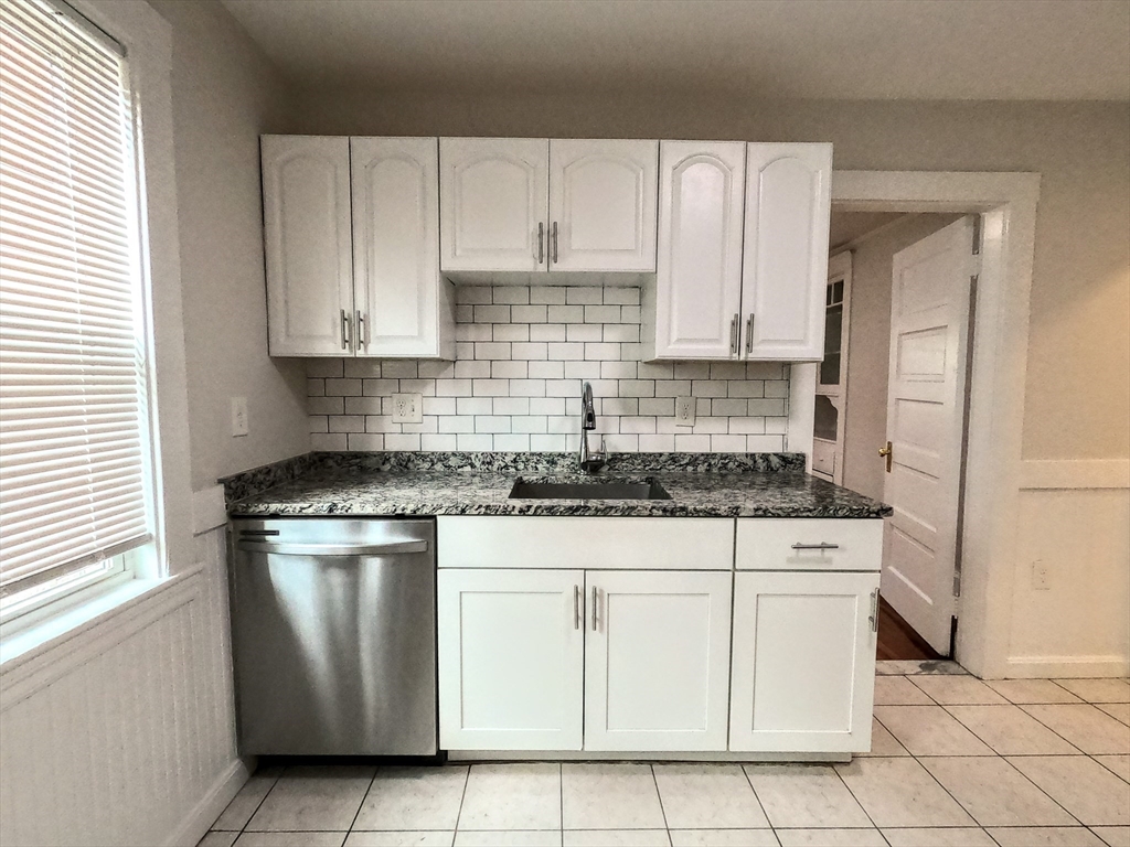ROSLINDALE SQUARE AREA! Property Video: https://youtu.be/XpZYpLZ-doQ Charming first-floor unit in the heart of Roslindale! Private entrance welcomes you into a bright, bow-front living room with gleaming wood floors flowing into the dining room with period hutch. New High Efficiency Heat Systems and 1 Car Off Street Parking. The renovated kitchen features granite counters, white cabinetry, stainless 5-burner gas range, built-in microwave, fridge, dishwasher, and pantry. Renovated bath with stone sink, tile floors & full tub/shower. Two bedrooms, each with closets. Spacious back porch, coin laundry in basement & one driveway space included. Steps to Roslindale Square's renowned independent restaurants, cafés, boutiques & Saturday Farmers Market. Roslindale Village Commuter Rail station is just minutes away with easy access to downtown Boston.