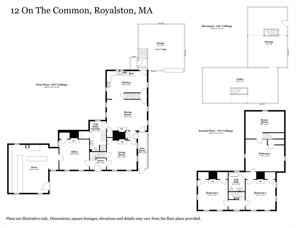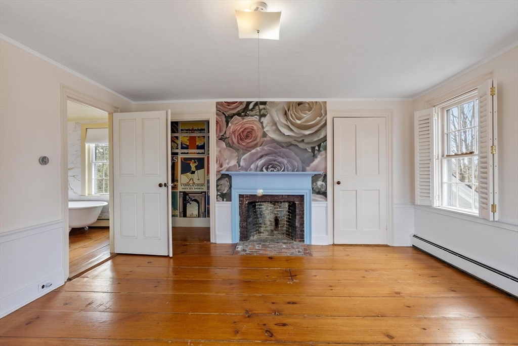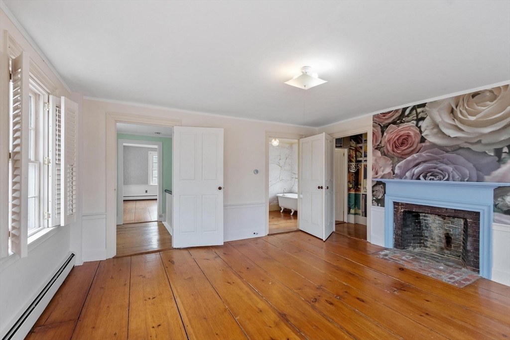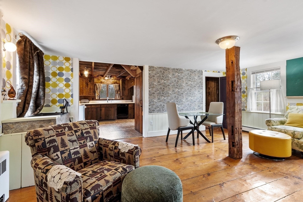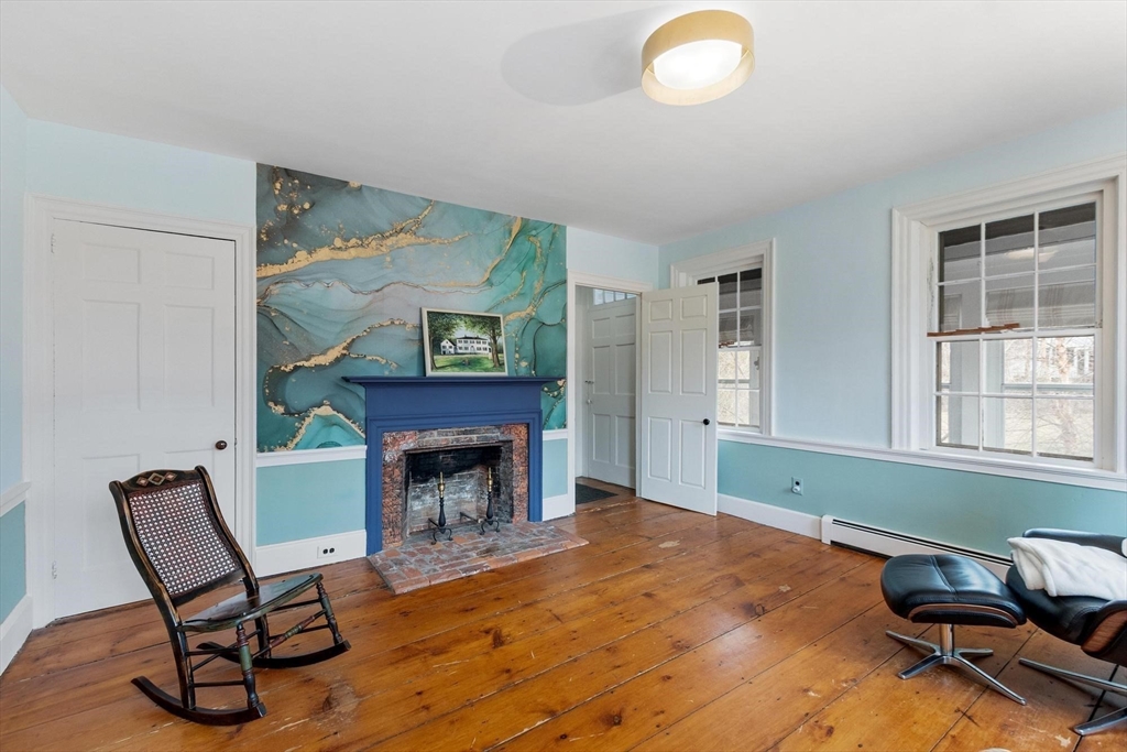 SMALL TOWN COUNTRY LIVING AT IT'S BEST! This Historic Home On ROYALSTON COMMON is dated 1810, but you don't have to live like a Colonial. Here you have all the modern necessities. Check photos to see how liveable it is, with recent heat, water treatment system, satellite, wifi everywhere, and Ring! A kitchen window overlooks fields and forests. The center entry has traditional right and left fireplaced parlors (one serves as the home office) . The largest room downstairs has the original kitchen fireplace, but would work as a family room or dining room. Upstairs find three bedrooms, a bonus room, new bath, and two stairways to the first floor. History is here five orginal fireplaces. Interesting is the original Post Office and Country Store ell....would you enjoy, or find another use? From the southern enclosed porch, the yard shows love and care, with perennials, roses, bushes, and flowering trees. The garage with an auto opener has loads of storage to complete perfection.