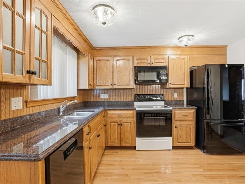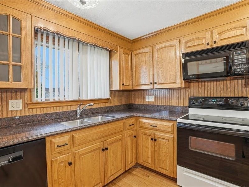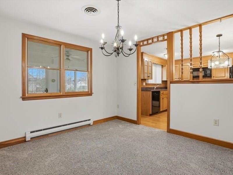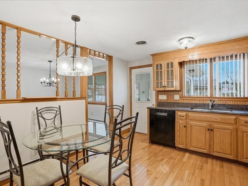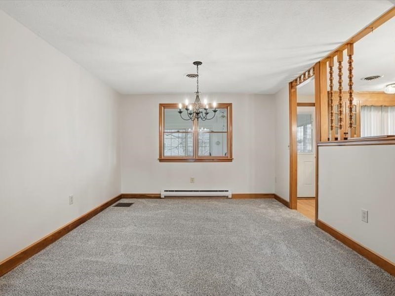 Move right into this warm and inviting 3-bedroom home, recently refreshed and offering comfortable living throughout. The main level features a functional fireplaced living room open to the dining area, an eat-in kitchen with appliances included and direct access to a three-season room overlooking the backyard, new wall-to-wall carpeting, updated lighting, and three bedrooms two of which have double closets. The finished lower level offers a spacious front-to-back family room with new carpeting, a full bath with new LVP flooring and shower stall, plus laundry with washer/dryer. Direct access to a one-car garage with additional storage or workshop space. Main level features a hot air heat pump with A/C. Other upgrades Roof (2021), Water Heater and Circuit Breakers (2025).Enjoy a flat yard ideal for entertaining. Conveniently located near schools, parks, shopping, and major routes.