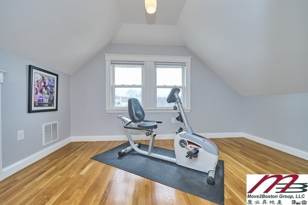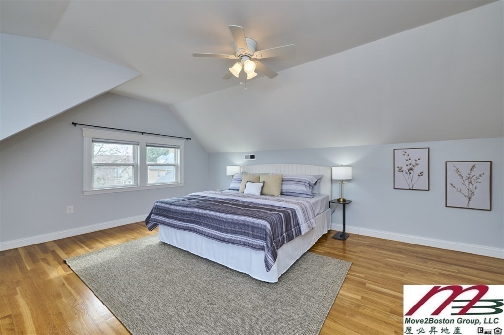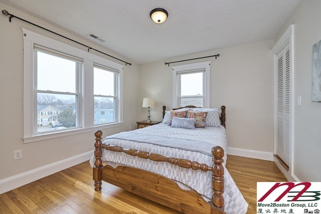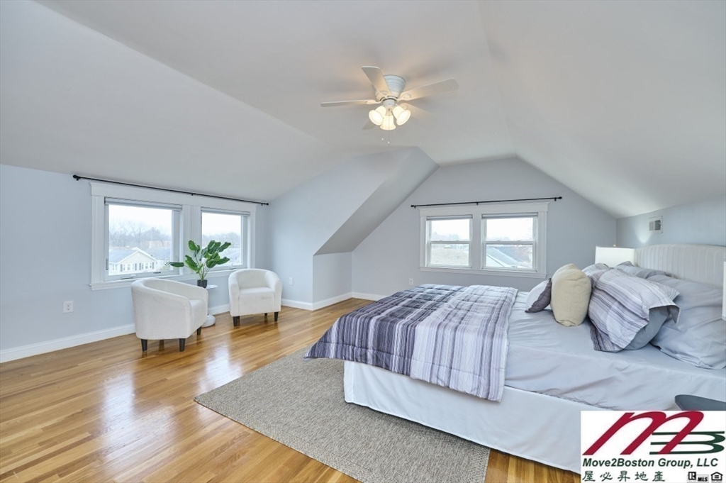Rare find 9 room condo (GLA 2220 sq ft) on 2nd floor of a well-maintained two-family home, close to Medford Center and Lawrence Estate neighborhood. This spacious home has two levels. Main floor has living room with fireplace, formal dining room, fully appliances kitchen, 2 good size bedrooms, modern bath, a versatile bonus room just off the living room served as the perfect game room for fun & relaxation. The cozy family room is the ideal spot to enjoy quality time with loved ones. Upstairs floor featuring the expensive Master BR suite, easily accommodate a king-size bed, large sitting area, walk in closet, modern full bath, plus a home office/ exercise room. Many desirable features like central air, laundry in unit, hardwood floors, pet friendly, garage & tandem off street parking space, beautiful common black yard, storage space in the basement. Walk to public transportation and commuter rail. Close to Wegmans, Middlesex Fells Park Trails, many shops& restaurants in Medford Square.