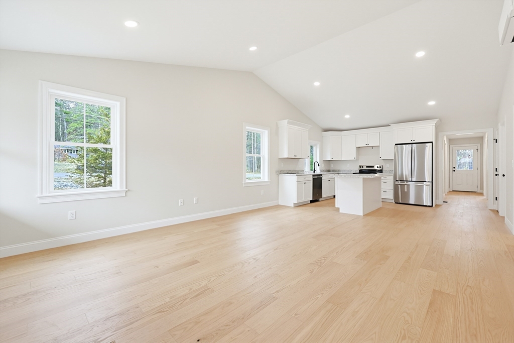 Welcome to effortless single-level living in this beautifully designed brand-new condo, where style, comfort, & functionality come together seamlessly. Thoughtfully laid out with an open-concept design, this home is filled with natural light & features stunning engineered wood flooring throughout. The bright & inviting kitchen is the heart of the home, complete with a spacious island, stylish granite countertops, brand-new stainless steel appliances, & a generous pantry—perfect for both everyday living & entertaining. Enjoy the ease of main-floor living with convenient laundry hookups, spacious bedrooms, & a well-appointed primary suite featuring a walk-in closet & a beautifully designed roll-in tiled shower. Cathedral ceilings enhance the airy, open feel, while oversized windows bring in abundant sunlight, creating a warm & welcoming atmosphere throughout. Additional highlights include garage parking, ample storage, and a full basement. Light, bright, sunny, and completely brand new!