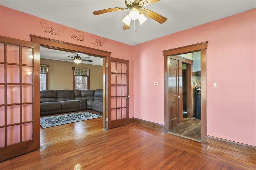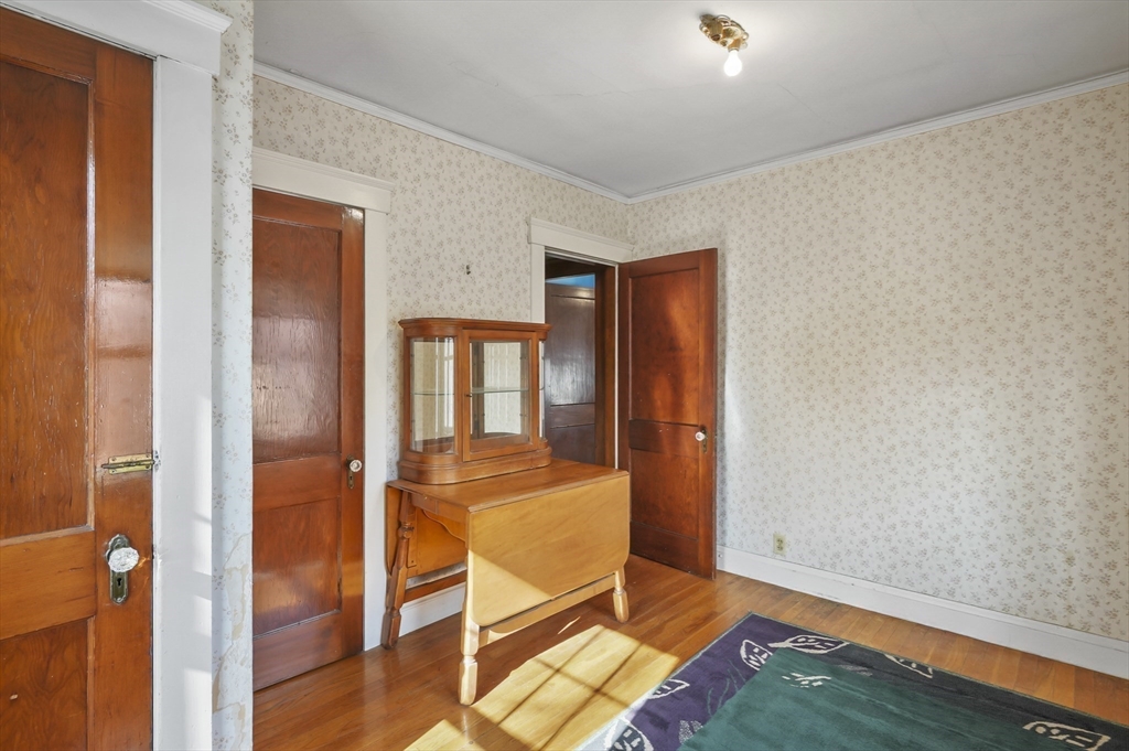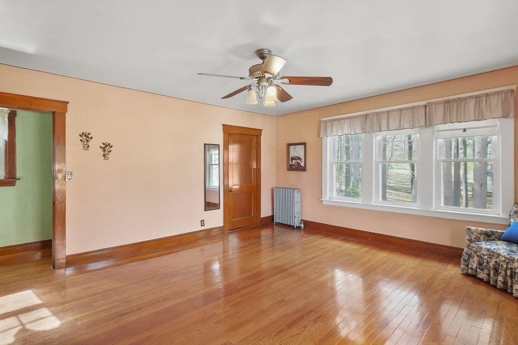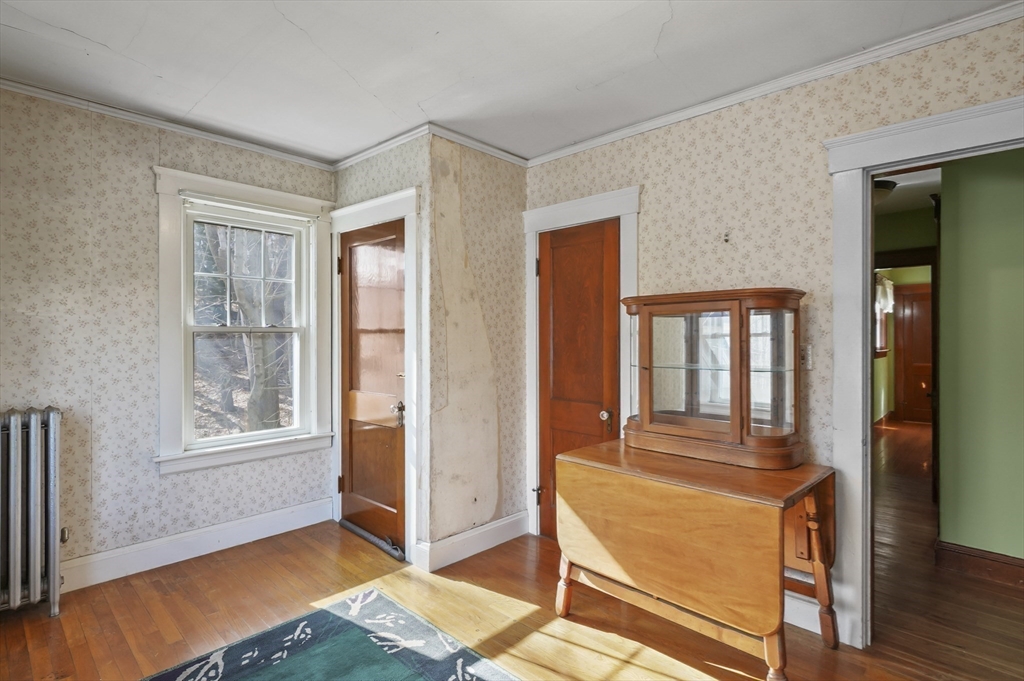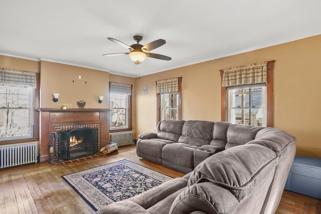 Welcome to this charming 4-bedroom, 2-bath gem in South Gardner! Enter through the enclosed porch into a welcoming foyer accented by stunning original woodwork. The spacious living room with a cozy wood-burning fireplace and the formal dining room both feature gleaming hardwood floors, while the bright family room offers wall-to-wall carpeting and two bay windows that fill the space with natural light. The main level also includes a large kitchen with stainless steel appliances, a full bath, and a convenient laundry area. Upstairs, a stunning wood staircase leads to a classic antique-style hallway and four generously sized bedrooms, all with rich hardwood flooring. A second full bath and additional storage add to the home’s functionality. Outside, enjoy a spacious backyard, paved driveway, storage shed, and a two-car garage. Tucked away on a quiet side street yet just minutes from highways, shopping, and entertainment, this home offers the perfect blend of character and convenience!