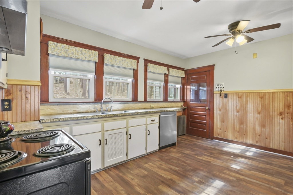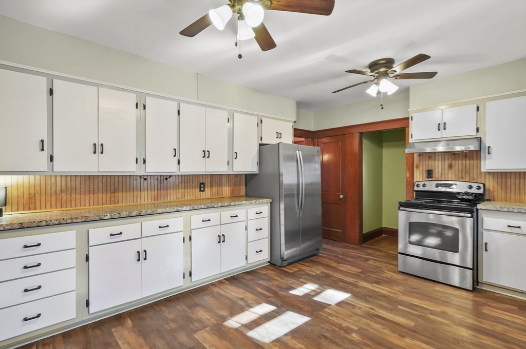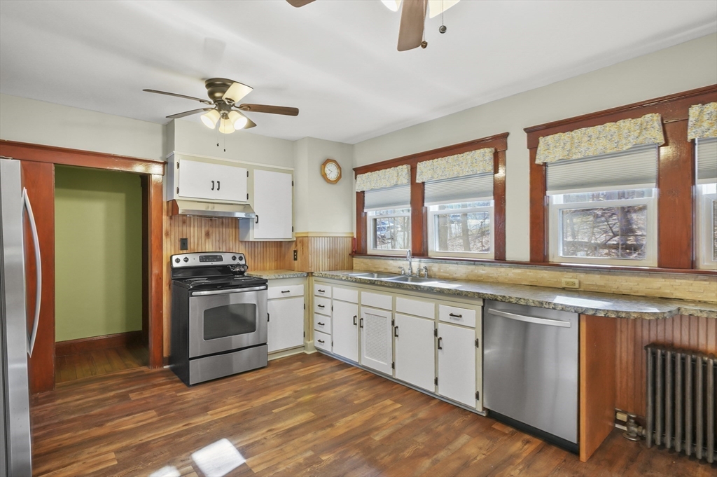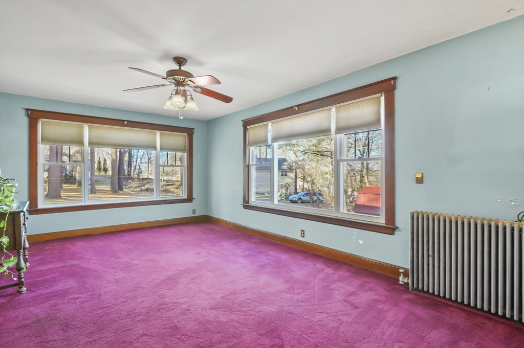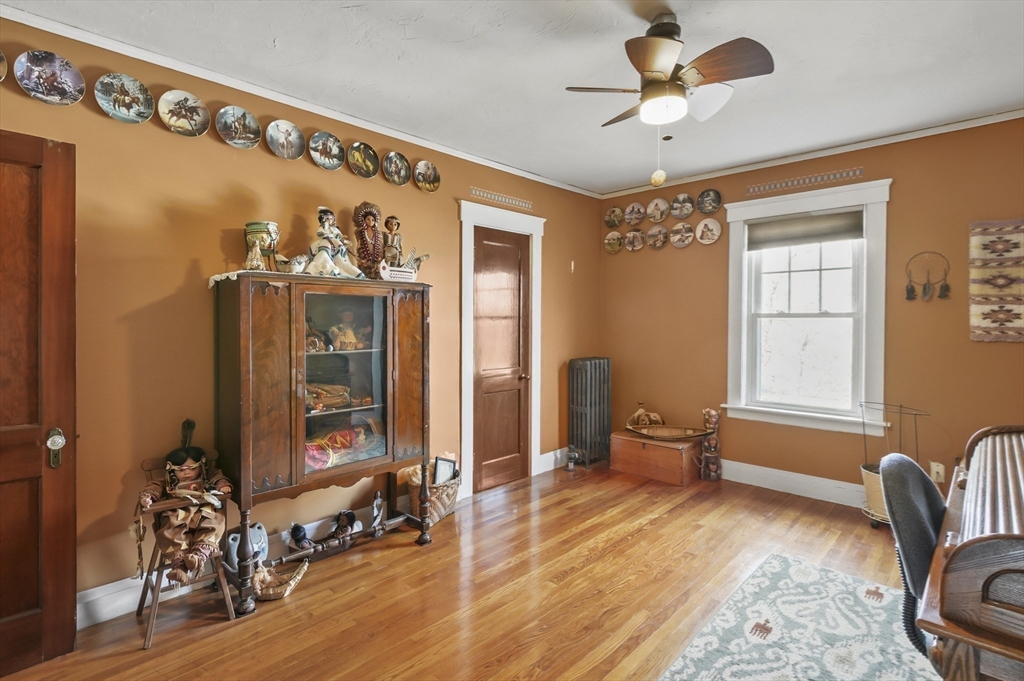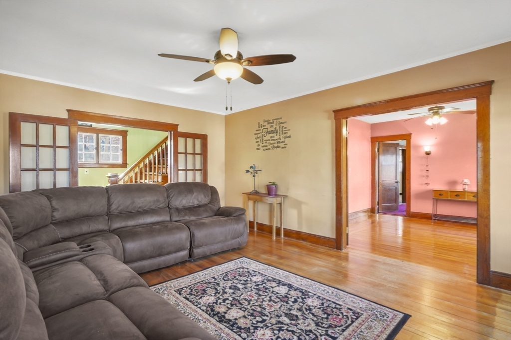 Welcome to this charming 4-bedroom, 2-bath gem in South Gardner! Enter through the enclosed porch into a welcoming foyer accented by stunning original woodwork. The spacious living room with a cozy wood-burning fireplace and the formal dining room both feature gleaming hardwood floors, while the bright family room offers wall-to-wall carpeting and two bay windows that fill the space with natural light. The main level also includes a large kitchen with stainless steel appliances, a full bath, and a convenient laundry area. Upstairs, a stunning wood staircase leads to a classic antique-style hallway and four generously sized bedrooms, all with rich hardwood flooring. A second full bath and additional storage add to the home’s functionality. Outside, enjoy a spacious backyard, paved driveway, storage shed, and a two-car garage. Tucked away on a quiet side street yet just minutes from highways, shopping, and entertainment, this home offers the perfect blend of character and convenience!