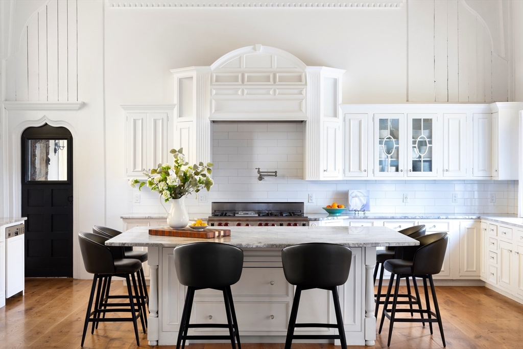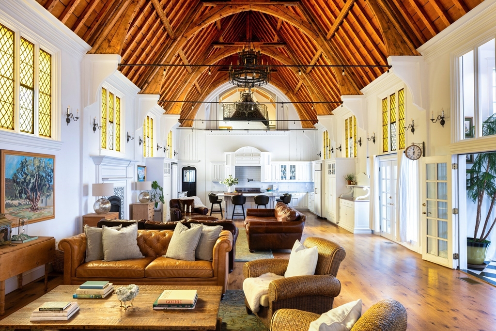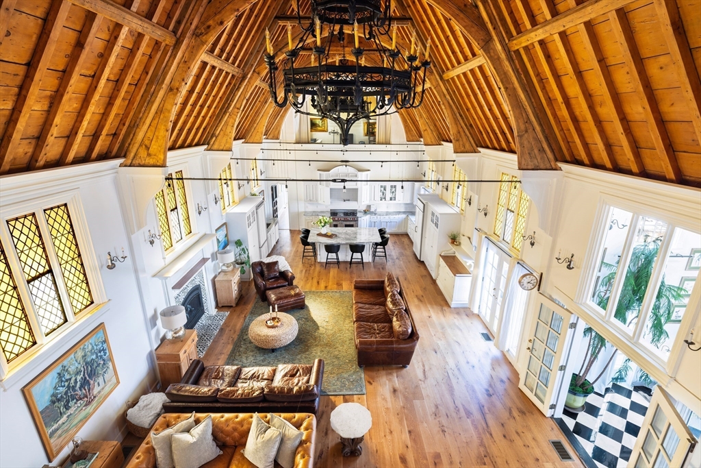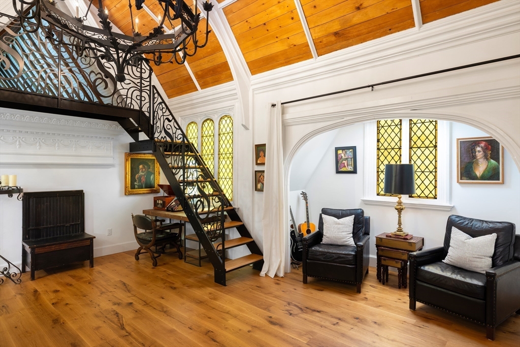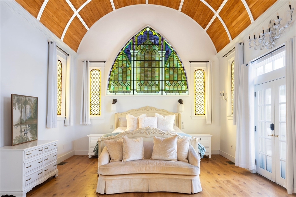 This home is a truly extraordinary offering. An iconic 1887 former chapel in Groton Center, once owned by the prestigious Groton School, now beautifully converted to a single-family residence while preserving its striking Gothic Revival architecture. Thoughtfully designed for multigenerational living with remarkable versatility, this home easily accommodates extended family, guests, or income-producing possibilities. A spacious apartment above the four-car garage expands the options even further. The connected lower level offers excellent privacy with its own entrance and features a full kitchen, two bedrooms, an office, laundry, and a bonus room ideal for an in-law suite. Set on a corner lot with two entrances and a circular driveway, the property also offers a private, fenced backyard and beautifully curated, low-maintenance grounds. A rare blend of architectural beauty, historic significance, and modern-day versatility