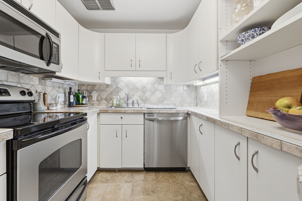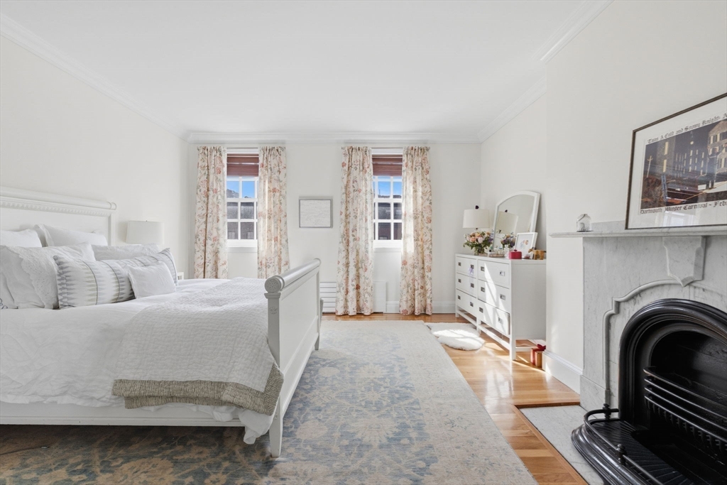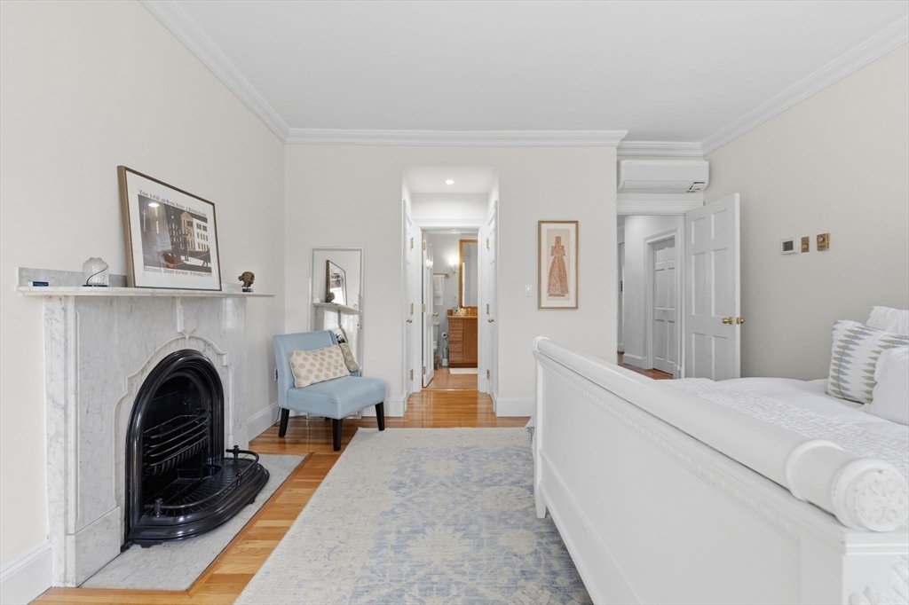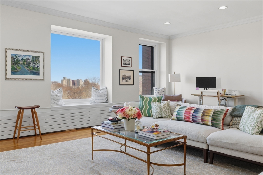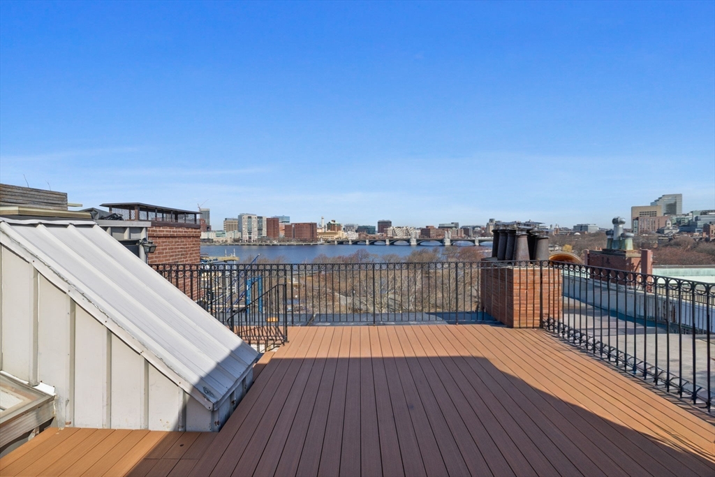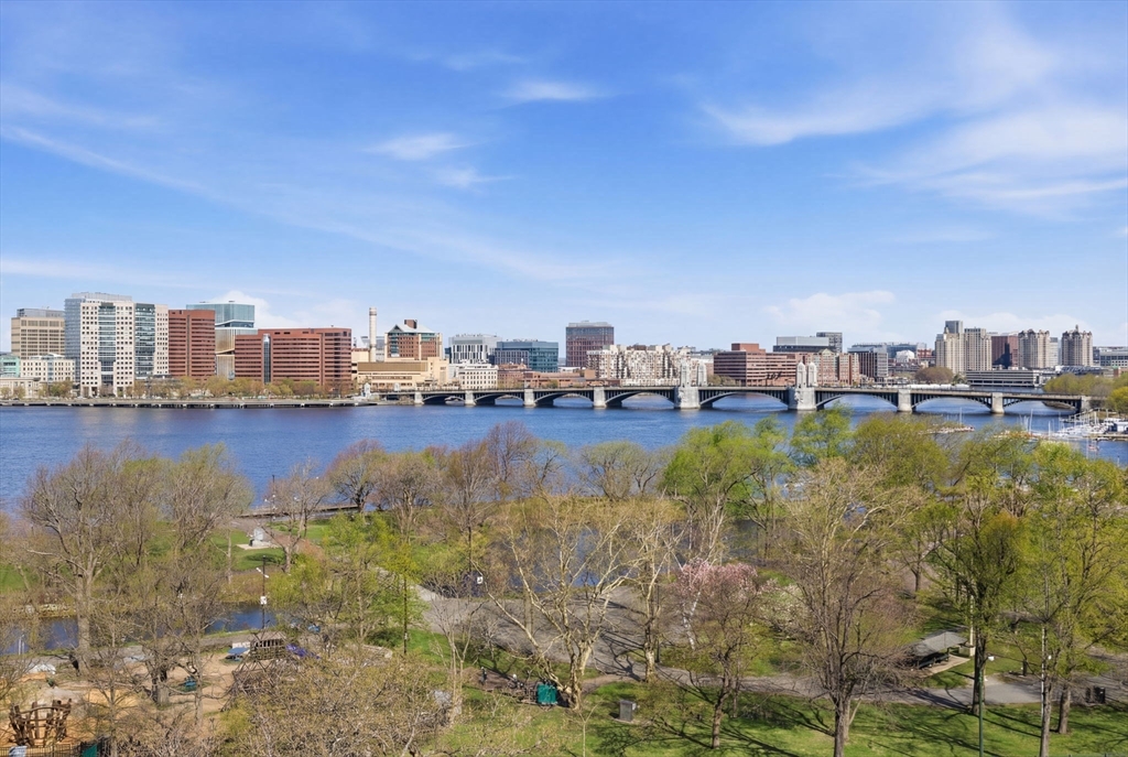 Waterside Beacon Street! Elegant two bedroom, two bathroom, floor-through residence offering direct elevator access, parking, and Charles River views from oversized windows overlooking the Esplanade, and Hatch Shell. The well designed floor plan offers generous living space, with wonderful natural light and sweeping sightlines that capture the domes of MIT and glorious sunsets. Amenities include central air conditioning and in-unit washer/dryer. Enjoy access to a stunning roof deck with panoramic 360-degree views, where you can take in the fireworks on Independence Day. Professionally managed association with many recent building improvements. Extra storage, and guest parking complete this exceptional offering.