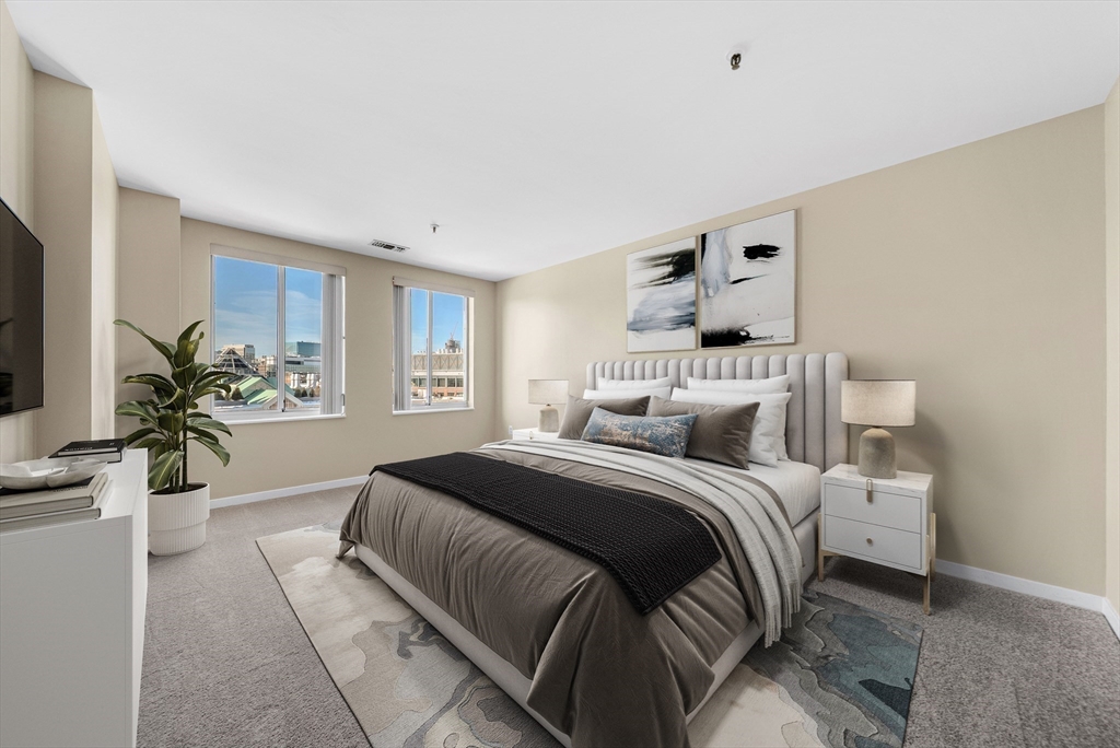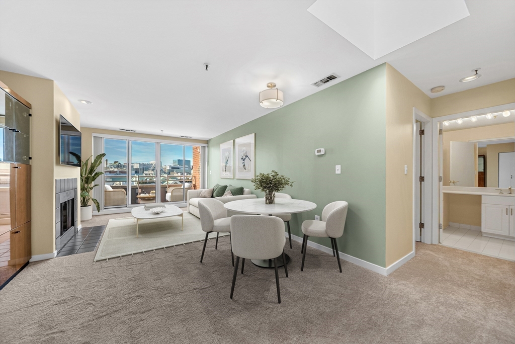 Available for the first time in 30 years! Exceptional PENTHOUSE unit at the highly sought-after Thomas Graves Landing overlooks the Lechmere Canal and offers a rare blend of privacy, service, and stunning water views. Enjoy garage parking, extra assigned storage, elevator access, 24/7 concierge, and your own private balcony with a southwest-facing panoramic views and scenic walking paths right outside your door. Inside, big picture windows, stunning skylights, brand-new carpet, stainless steel appliances, exceptional closet space, and an elegant wood-burning fireplace. Resort-style amenities include a beautiful and recently renovated common entry, fitness center, locker rooms with showers, sauna, function room, and an outdoor swimming pool with a jacuzzi. Additional perks EV charging in the garage and ample guest parking at the front of the building. Great location near the Charles River, Kendall Square (Red Ln), Lechmere (Green Ln), Cambridge Crossing, and Bunker Hill (Orange Ln).