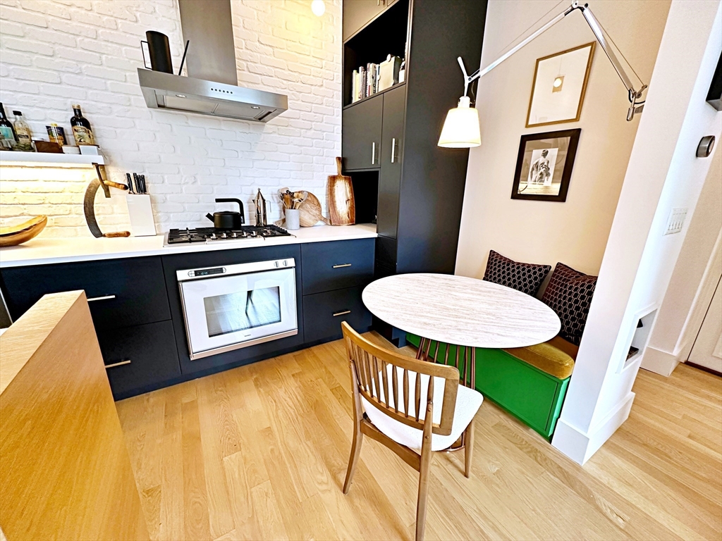 Available June 1st! Live in style in this exquisitely designed 1 bed/1 bath home located in the heart of East Boston's Jeffries Point neighborhood. As you enter the foyer, you have a coat closet (with space for more than just coats). Finishes throughout include a modern kitchen with quartz countertops, high end stainless steel appliances, brushed bronze fixtures and a breakfast nook. The center island features a TV lift giving your living room a cool factor, while maximizing living space! Additional features are HW floors throughout, in-unit laundry and 1 OFF-STREET PARKING SPACE (tandem)! Walk to award winning Piers Park with it's gorgeous views of the harbor and city skyline. Enjoy nearby restaurants such as The Quiet Few, The Tall Ship, MIDA, and the Reelhouse. located on the waterfront. Easy 10min walk to the Maverick Sq T or ferry with direct connections to the Seaport. Initial lease to go thru 8/31/27. Schedule a showing today! Video tour available.