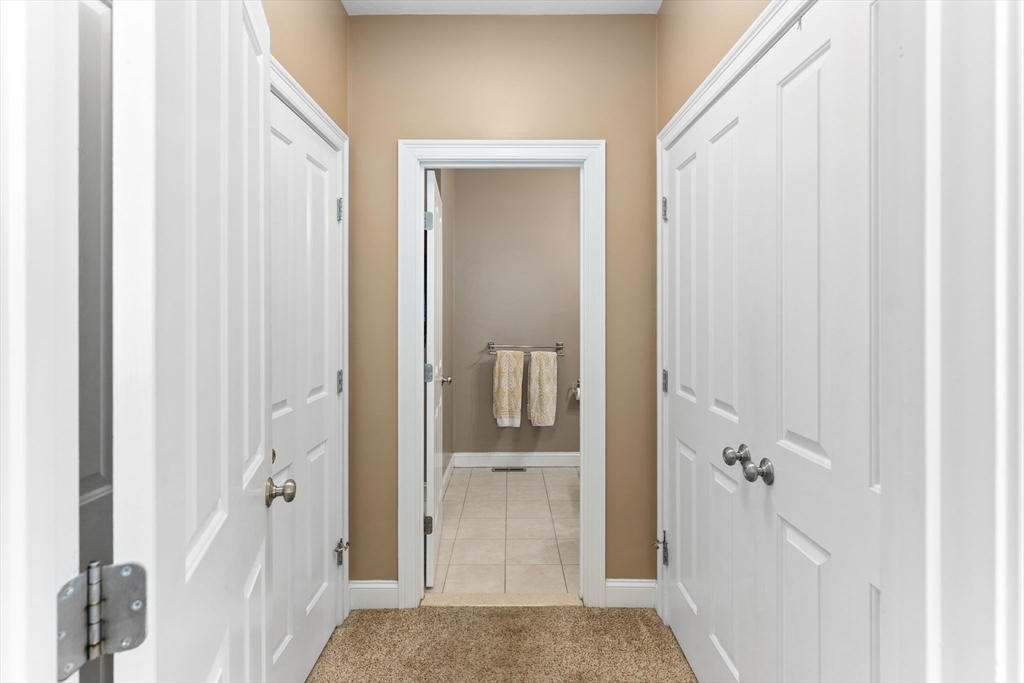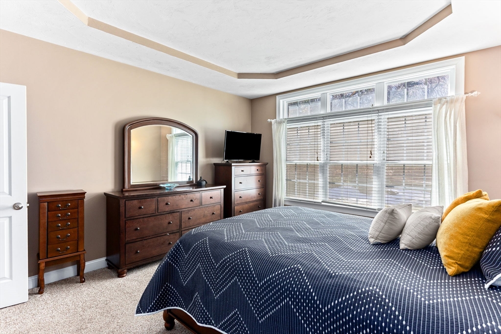 Beautiful townhouse offering the ease of first-floor living with a primary bedroom and ensuite on the main level. The inviting living room features soaring ceilings, a gas fireplace, and French doors leading to a private patio with peaceful wooded views.The second floor offers two additional spacious bedrooms and a full bath, while the finished lower level provides great bonus space for a family room, office, or gym. Additional highlights include first-floor laundry and a one-car attached garage.Enjoy low-maintenance living with the association handling snow removal, trash removal, and exterior maintenance. Ideally located minutes to Rt. 495, the commuter rail, shopping, and restaurants. A rare opportunity in a desirable community, serviced by Middleboro Gas & Electric for affordable utility costs. NO SHOWINGS UNTIL OPEN HOUSE Sat April 11 1:00-2:30 & Sun April 12th 11:00-12:30