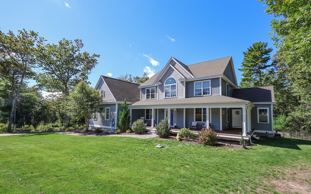 Welcome to Highclere, an elegant & thoughtfully designed home that blends style w/modern comfort. Built in '19 in highly desired Windham NH for it's excellent schools & easy access between NH & MA. This home features 5 beds, 3.5 baths offering a versatile layout ideal for everyday living & entertaining. The property includes a pool, patio, firepit, covered deck, and a heated oversize 4-car garage heated garage with a workshop that features 14-foot ceilings- perfect for car lifts & extra storage. The home offers 2 primary bedroom options, each with a full en suite bathroom with 3 addtl. bedrooms, the home provides flexibility for a variety of living arrangements. A full footprint unfinished walk-out basement. The expansive indoor and outdoor living is well suited for entertaining. The patio, wrap-around farmers porch and covered rear deck create transitions btw the interior and exterior of the home. A thoughtful layout, makes this home an opportunity for comfortable & functional living.