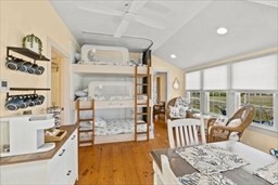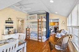 Welcome to Tidal View! Walking distance to the private beach and access to Scorton Creek for kayaking and paddle boarding! Beautiful Open floor plan with a sun-filled kitchen all stainless stain appliances, new cabinets and quartz countertops. Hardwood Large Plank Pine floors throughout, a wood-burning fireplace with French door to the outside. Two bedrooms and a custom-built-in triple bunk bed! New heat pumps for A/C and HEAT. Brand New Hybrid hot water tank. Safety WIFI water shutoff unit. Including washer and dryer in the unit. Full basement. Close to shops, restaurants, museums, bike paths, and ice cream shops. A Must-See Schedule your showing today! Easy access.