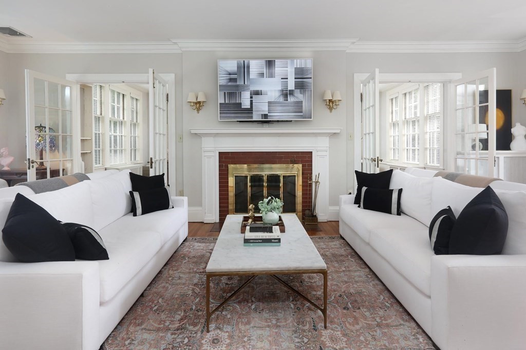 This stately brick residence is set on a beautiful level lot with magnificent grounds in Newton Centre. The main level features a lovely open foyer, a front-to-back living room with decorative molding, a custom designed kitchen with a dining area, a family room/sunroom with brilliant light, an elegant and oversized dining room, and an office. The second level has a spectacular primary bedroom suite with a bathroom and sitting room, two other large bedrooms, and another full bathroom. A separate entrance leads to a third-floor guest or au pair suite with two bedrooms and a full bath. There is a finished basement with ample built in custom cabinets and storage, a playroom, and a dog bath. Additional highlights include newer windows, high ceilings, hardwood floors, updated heating system, superbly manicured grounds, and a detached two-car garage. This property is in the Ward School district and convenient to Newton Centre restaurants and shopping as well as roadways into Boston