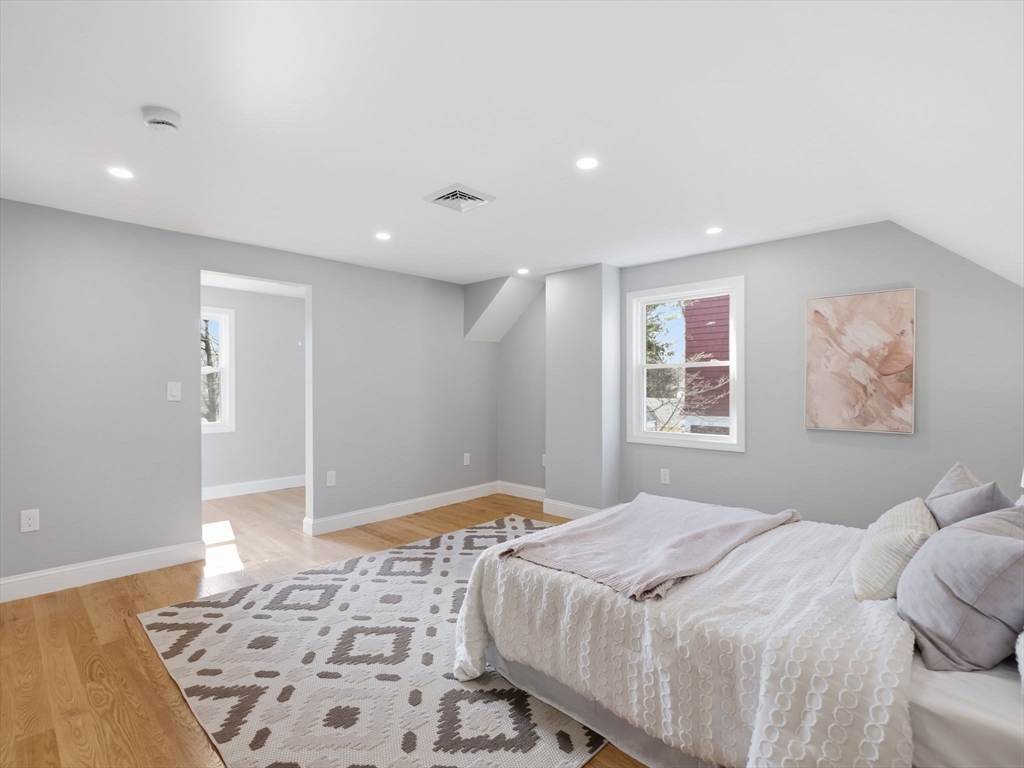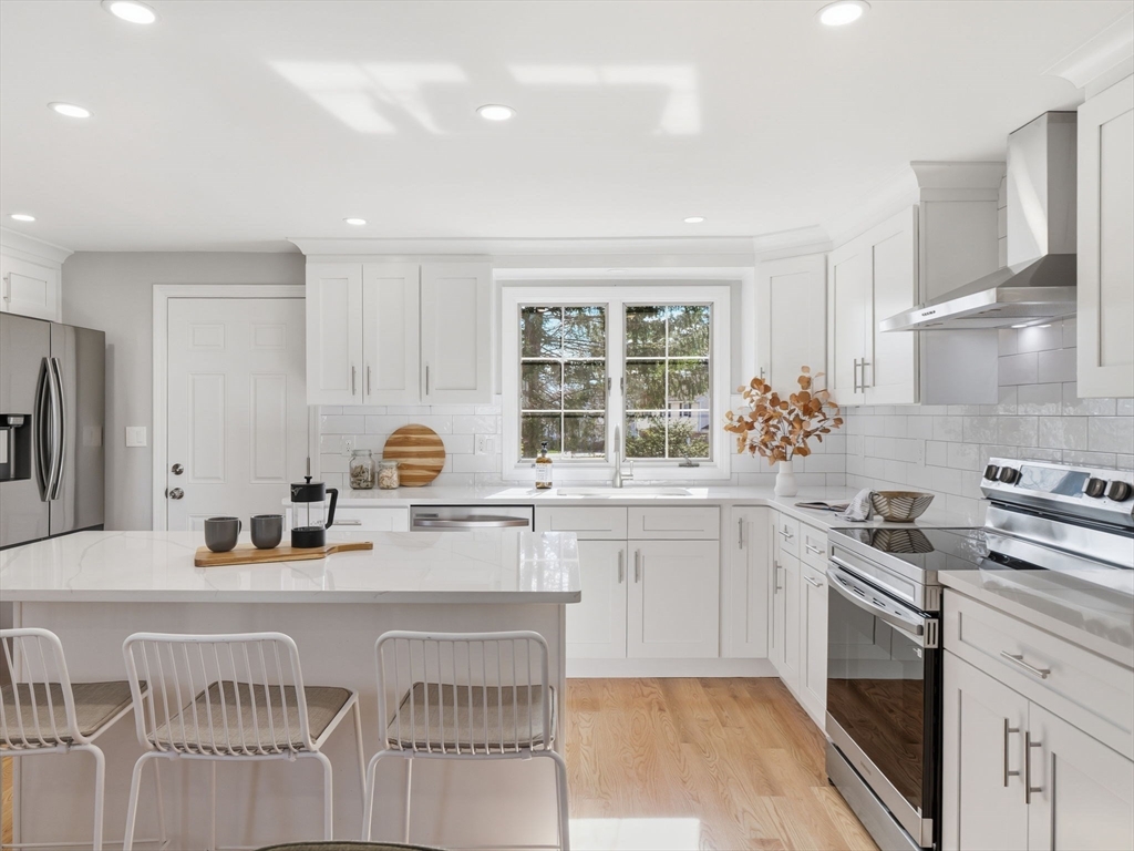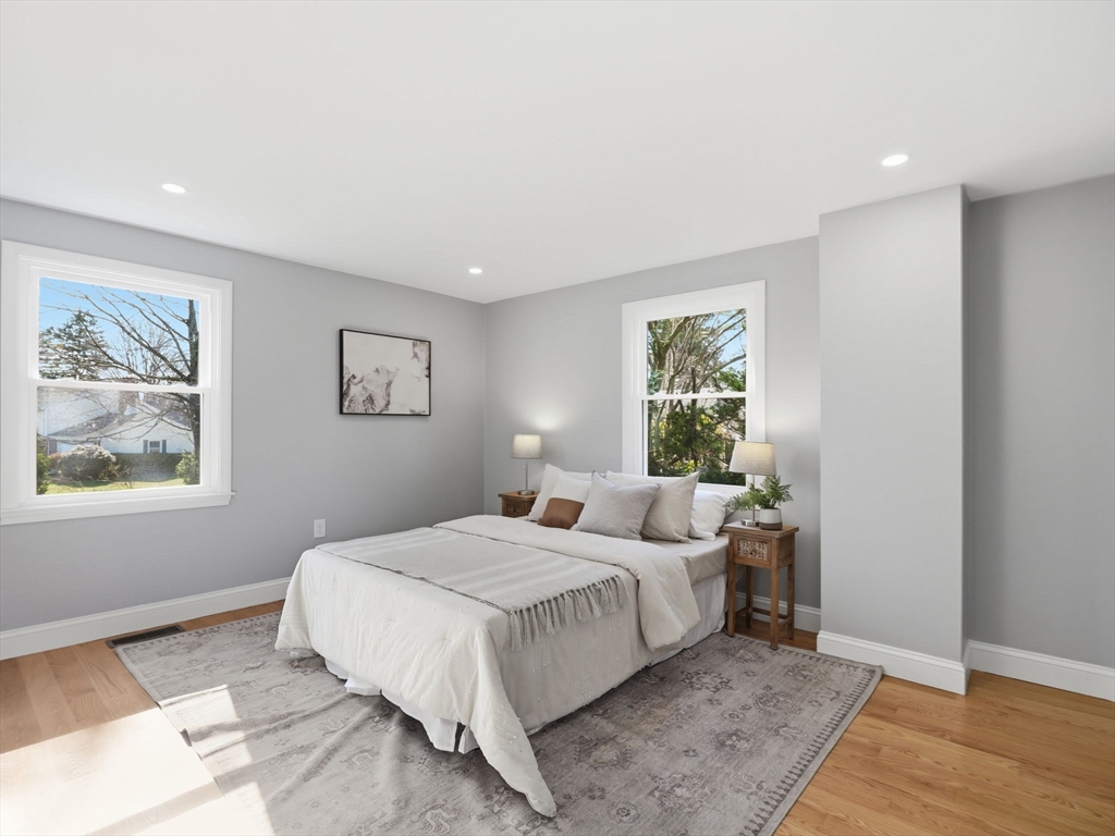 Charming, move-in ready and completely updated cape. This home offers 4 beds/4 baths including 2 master suites with walk-in closets on the second floor. Hardwood floors throughout, brand new kitchen with stainless steel appliances and quartz countertop and open concept living area. The fully finished basement includes a full bath and wet bar area, ideal for entertaining. Central heat and A/C provide year round comfort and attached one-car garage for added convenience. The backyard with patio off the kitchen offers a great space for relaxation or play. Washer/dryer hookups in basement as well as second floor where master suites are located. Central location close to amenities and Downtown Framingham as well as I-90. Schedule your private showing today or come visit our open house 4/11 1:30-3pm & 4/12 1-2:30pm