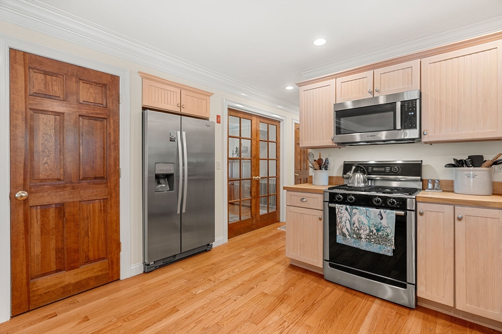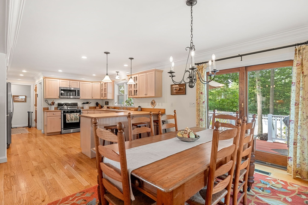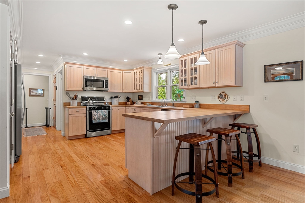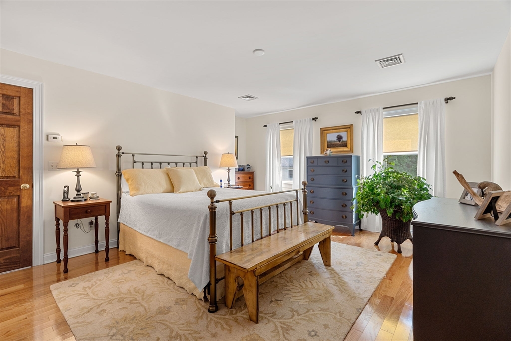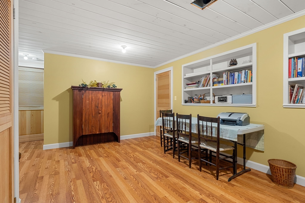 This is not your average Colonial. Immaculate, beautifully cared for, this home sits on a peaceful side street, minutes from commuter routes, downtown Amesbury, vibrant shops & restaurants, and miles of scenic walking and biking trails. Step inside to an inviting open-concept first floor, where hardwood floors, custom millwork, thoughtful built-ins, and a cozy gas fireplace create warm, elegant living spaces. The layout flows seamlessly to an oversized deck overlooking a private backyard—perfect for summer dinners, quiet mornings, and effortless entertaining. A major highlight: the garage addition, completed just 6 years ago, features a stunning family room with shiplap accents, hardwood floors, and ample storage—an ideal hangout or relaxation space. Outside, the fenced and beautifully landscaped yard offers room to play, garden, and unwind, complete with a charming shed. The lower level provides an extra 234 sq. ft. bonus room, giving you even more flexibility for a gym or playroom.