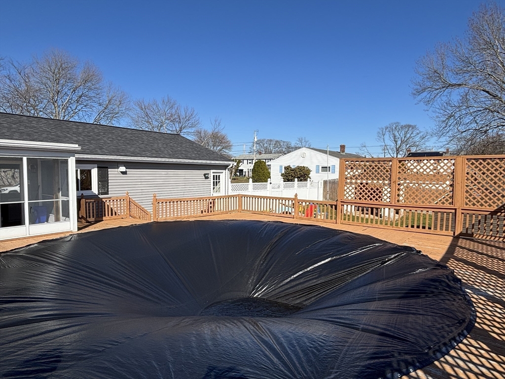 Americana Terrace offers a lovely 3 bed, 1.5 bath listing for those searching for one level living. The open floor plan of living room, dining area and kitchen are perfect for everyday enjoyment and holiday entertaining. This space leads to a bright and welcoming screened porch overlooking a 24' above ground pool w/surround decking. The gleaming hardwood floors were just refinished (2026), New roof (2025), Central AC/Forced hot air heat (2022), and complete kitchen upgrade 2022 The full finished basement offers a game/bonus room w/ pool table, exercise area, half bath w/ laundry, and den/play/office area. The .25 acre lot is fully fenced for your pets or child's safety. One driveway and walkway are stamped cement. One driveway is paved. Multiple storage sheds in the yard. The garage was converted to a workshop/storage area. The hot water tank is leased. Make sure your buyers don't miss this one.