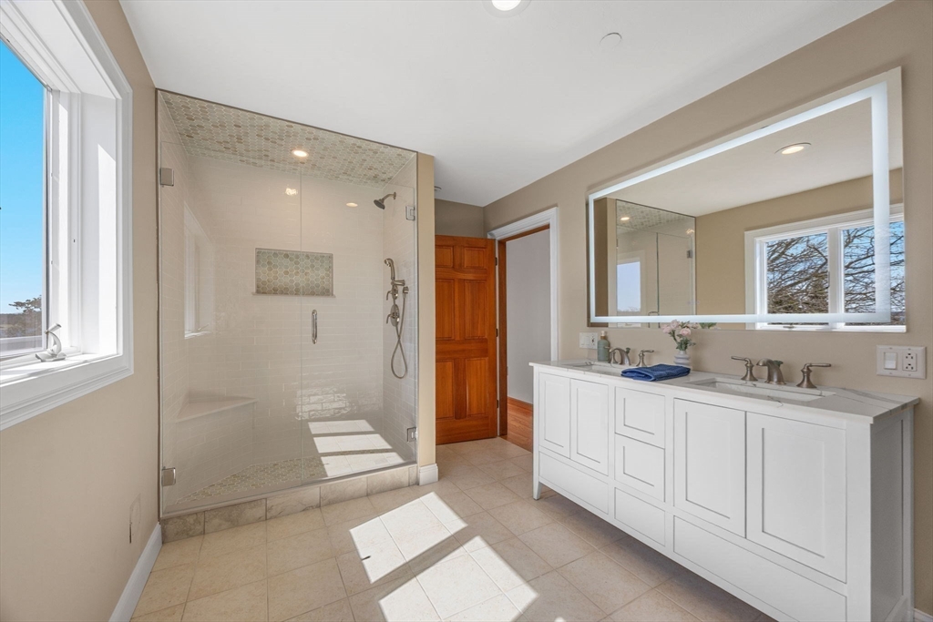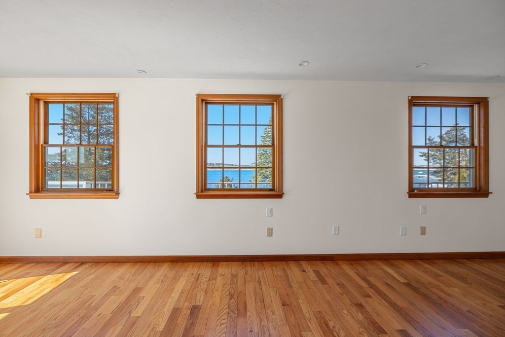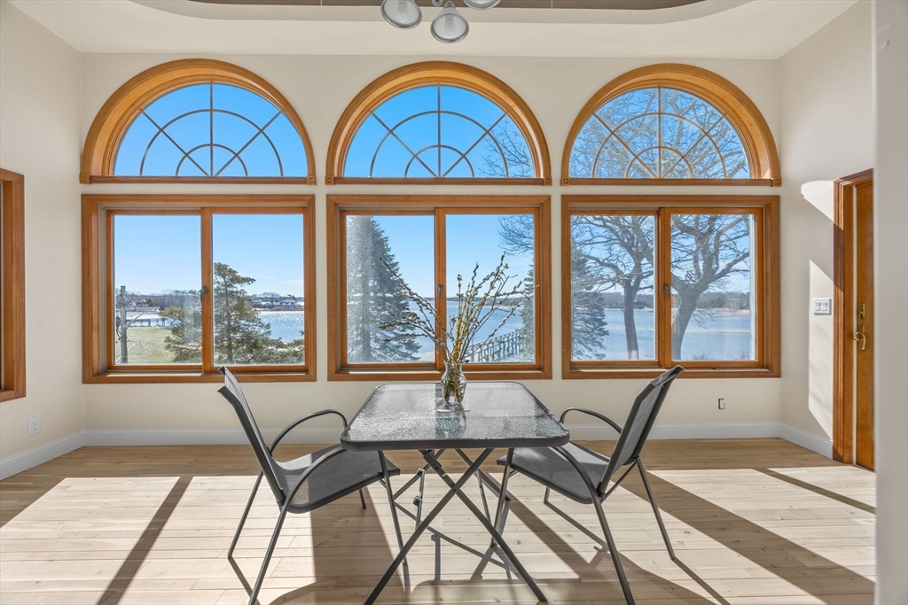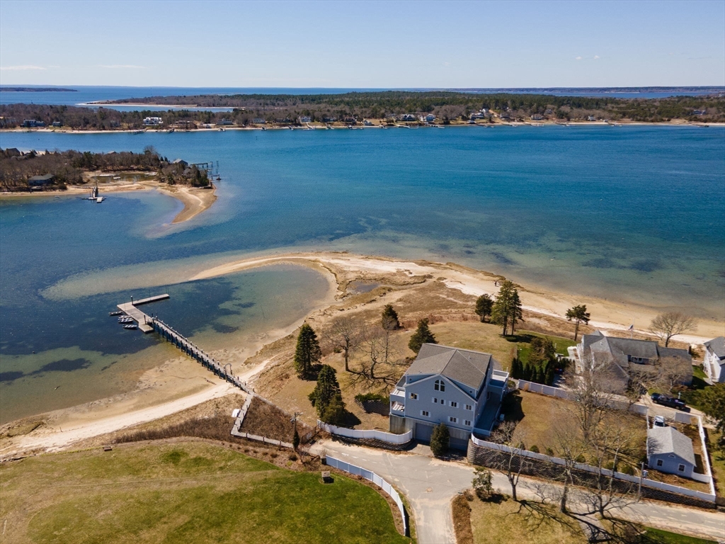 Set along the shores of Onset Harbor, this waterfront property offers expansive views, privacy, and sandy beach on over an acre. Minutes from Onset Village, the property was created by combining three parcels, resulting in a unique coastal setting. The home offers over 6,000 sq ft across three levels, designed for comfortable living and entertaining. A wraparound porch leads to an open layout with sunroom and a recently updated kitchen. The main level includes a bedroom with ensuite bath, ideal for guests/single-level living. The second-floor primary suite features an ensuite bath, private deck, and double cedar closets. Two additional bedrooms, guest bath, and laundry complete the second level. The third floor provides flexible space for office/gym/rec room. There is a 3,000 sq ft garage with 16' ceilings, plus a detached two-car garage and fenced yard. A rare opportunity to own a distinguished waterfront estate in Onset. Experience sunrise and sunset from your new home! NO FLOOD INS