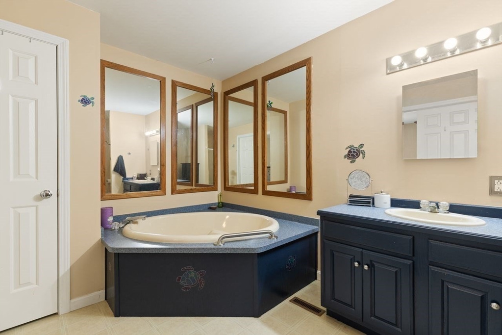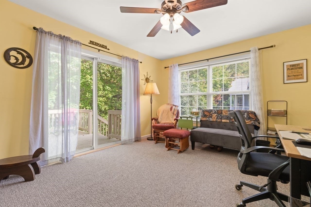 Enjoy easy living in this beautifully maintained free standing condo with a bright, open floor plan. The spacious living room with a cozy fireplace flows into a dining area—perfect for everyday living.The large kitchen offers ample space for cooking and storage, along with a cozy nook for a table. In addition to two bedrooms, a versatile bonus room provides flexibility for an office, hobby space, or guests.The private main bedroom suite includes its own full bath. The large basement offers abundant storage.Step outside to two sun-drenched outdoor spaces—ideal for relaxing and enjoying fresh air. This is a rare opportunity in one of East Bridgewater’s most desirable 55+ communities!